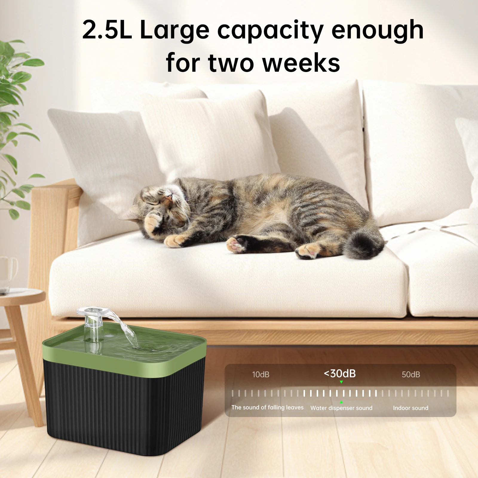 Fuente de agua para gatos de gran capacidad de 2,5 L - Fuente para mascotas filtrada ultrasilencioso para gatos, cachorros y suministros para mascotas para el hogar con múltiples mascotas