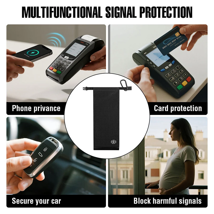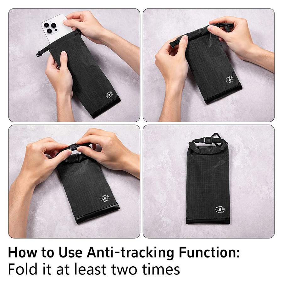 Fundas con bloqueo RFID, bolsa enrollable Faraday, billetera oculta de viaje antirrobo para teléfono, efectivo, tarjetas y llaves