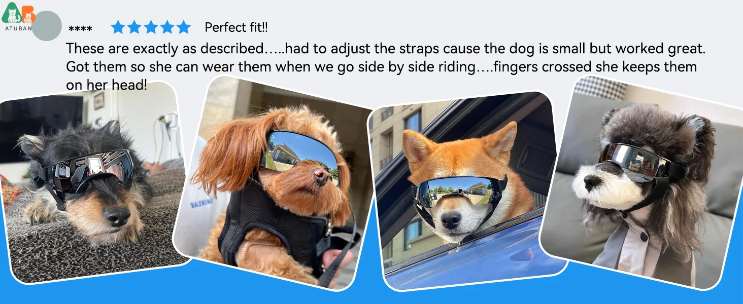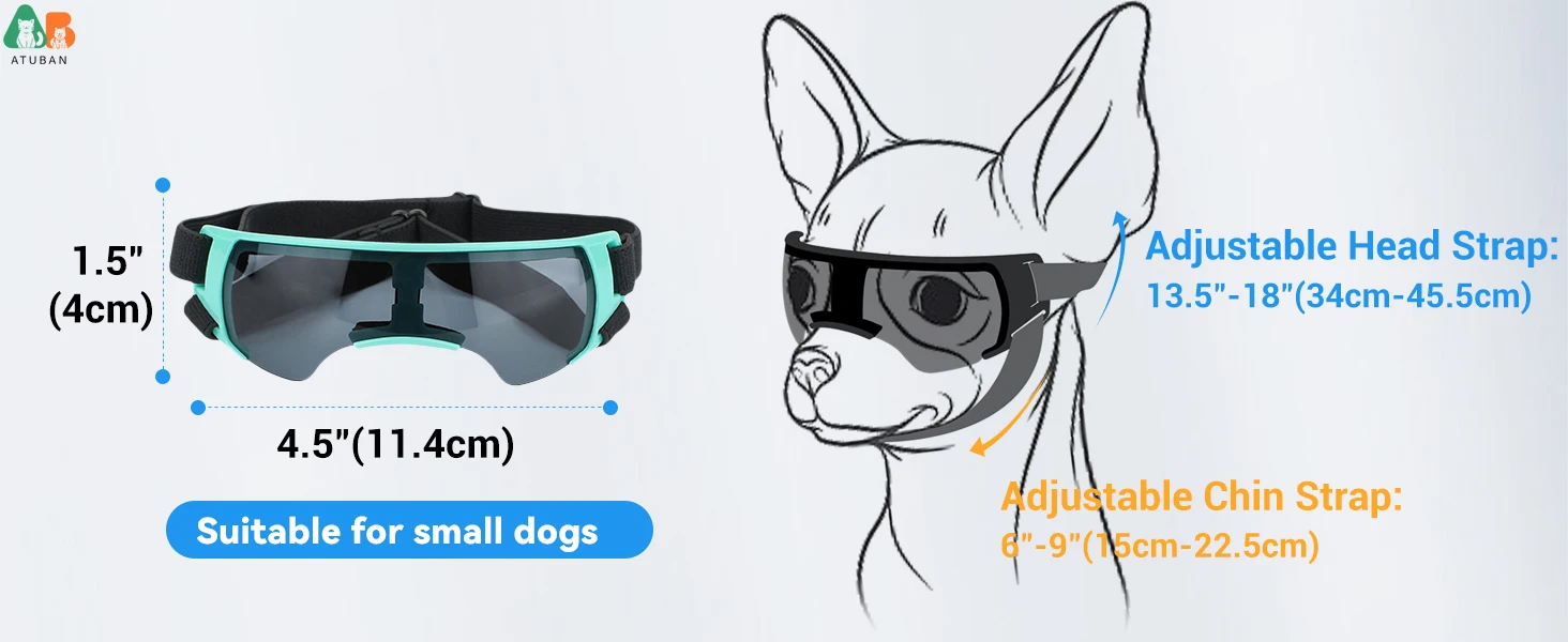 Adecuado para: Estas gafas para perros están diseñadas para perros pequeños y medianos, como Corgi, Poodles, Boston, Terriers, Pug, Schnauzer, Yorkshire, etc.No para perros muy pequeños.