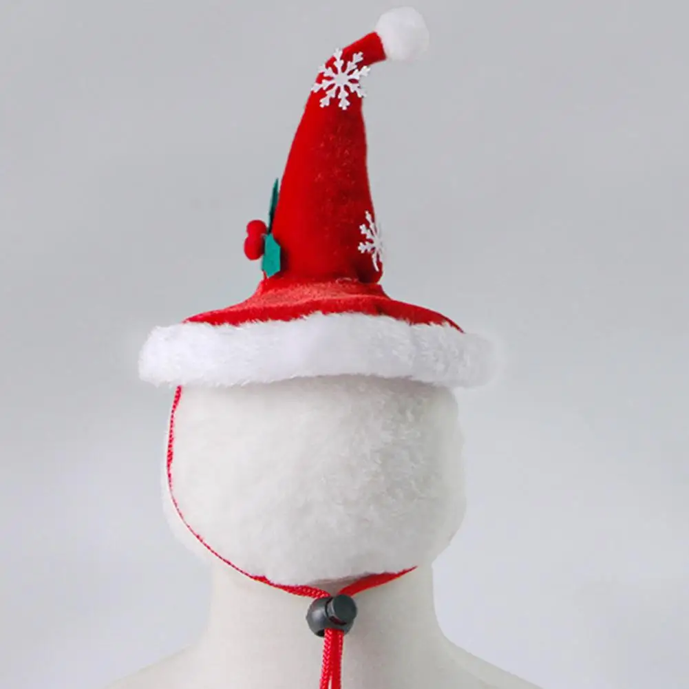 Gorro de Navidad para gatos, gorro de Navidad rojo de terciopelo para cachorros, sombrero para mascotas con copos de nieve para gatos, perros pequeños, accesorio fotográfico para fiesta, accesorio de disfraz festivo