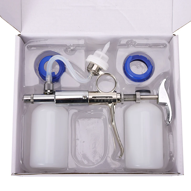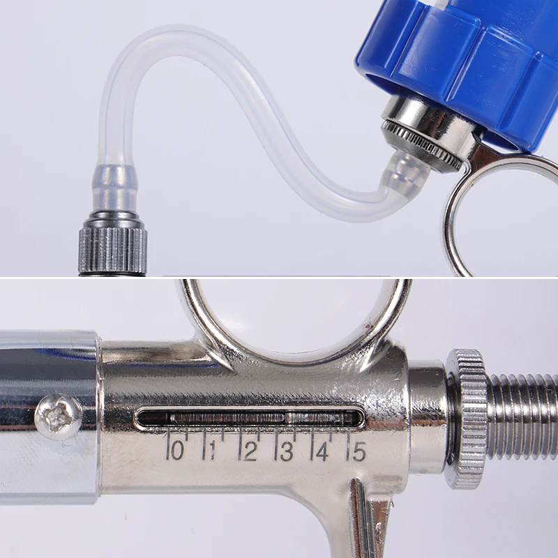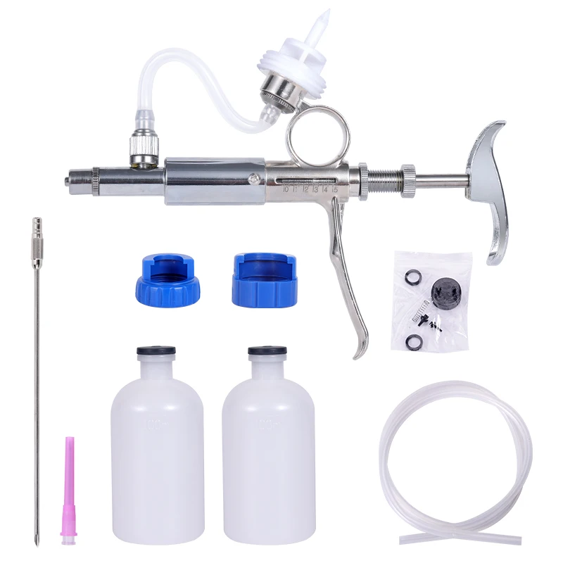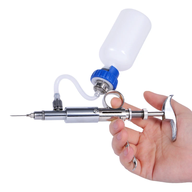 Jeringa continua automática para ganado de 0,5 ~ 5ml con 10 agujas, equipo veterinario con botellas de vacunación de Metal multifunción