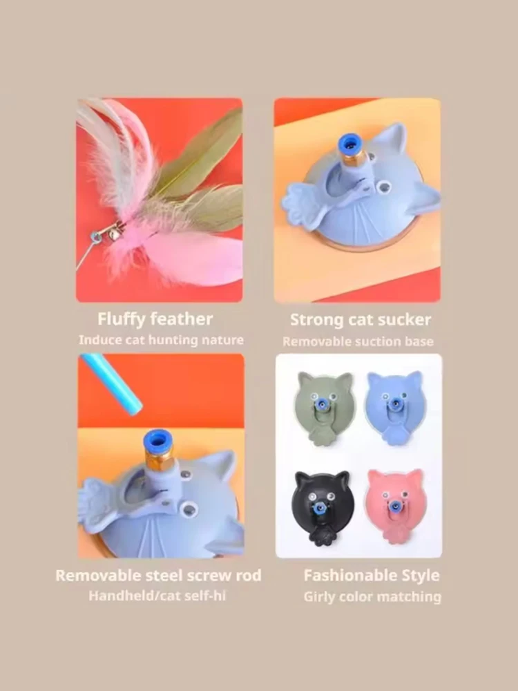 Juguete para gatos, cabeza de gato, ventosa para gatito, autoentretenimiento, alivio del aburrimiento, pluma, cabezal de repuesto, ventosa