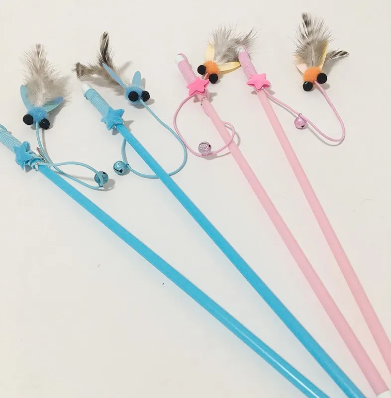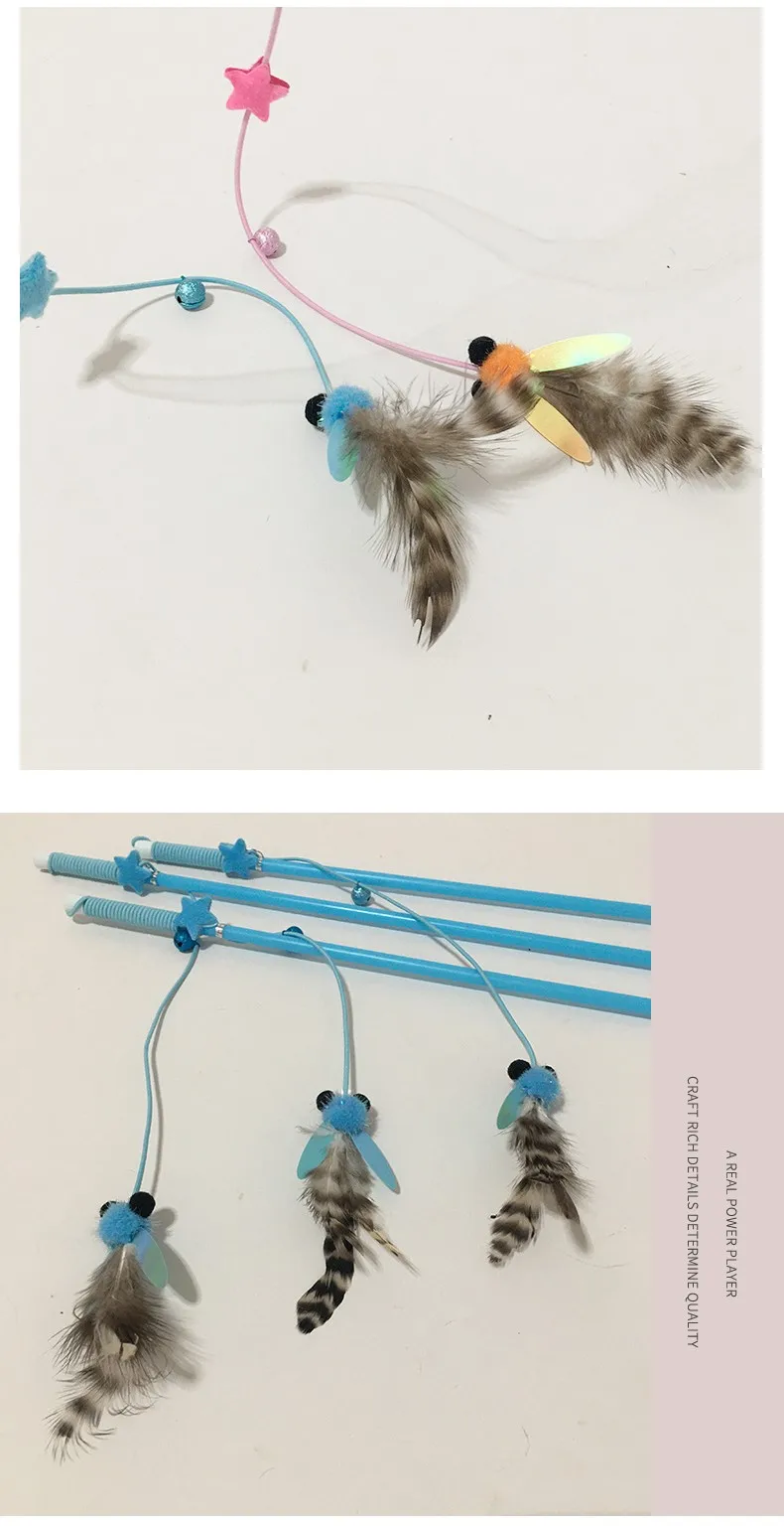 Juguete para gatos con plumas, palo para gatos, juguetes interactivos para insectos y gatos, palos de cuerda elástica, mariposa, gatito, juguete para gatos con campana