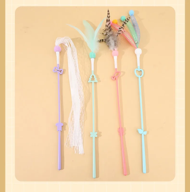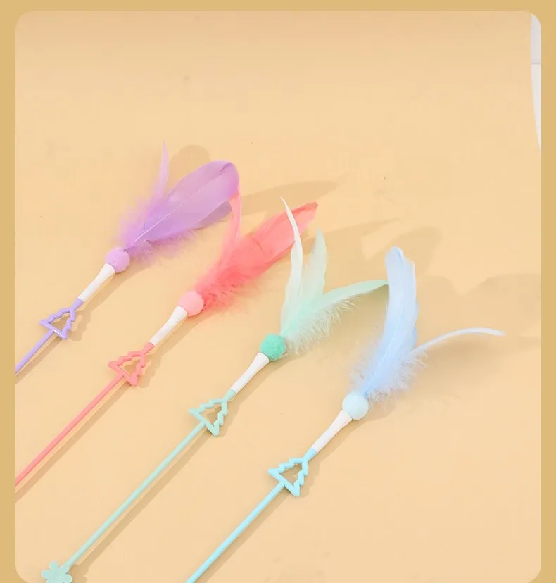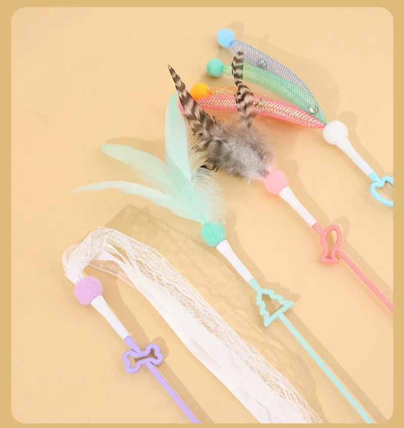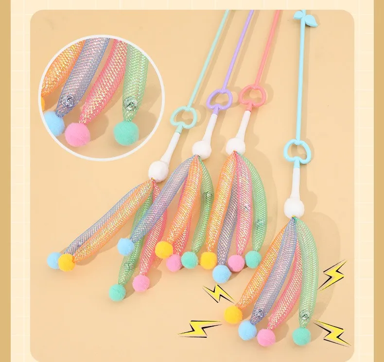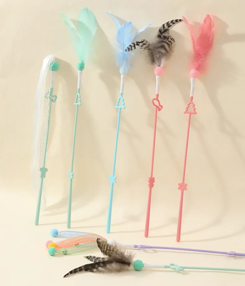 Juguete para gatos con plumas, palo interactivo para gatos, cinta de juguete con borlas, juguetes para gatos con campana, mango largo, palos de plumas para gatitos