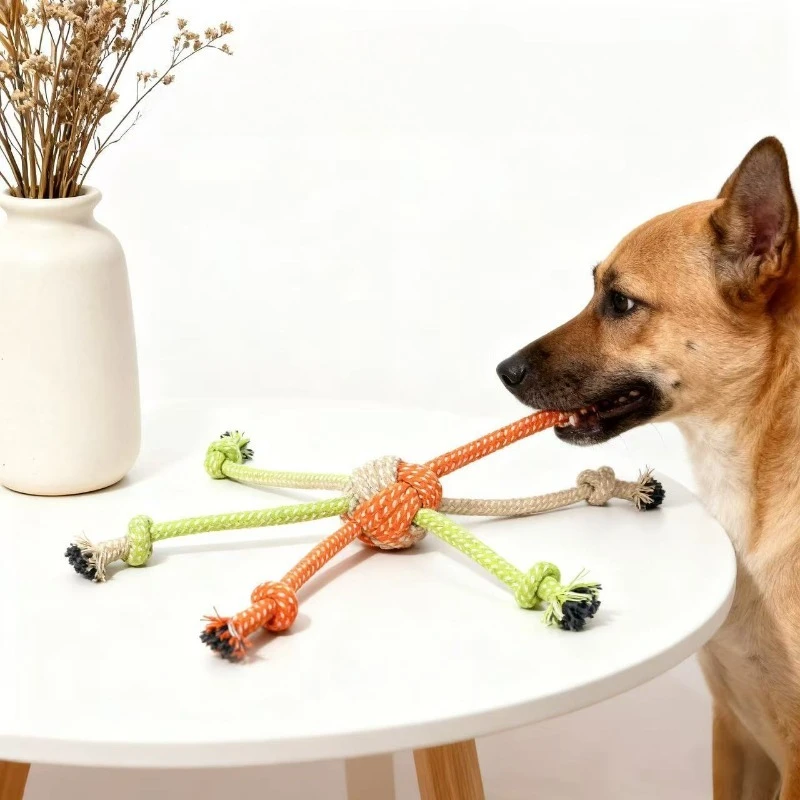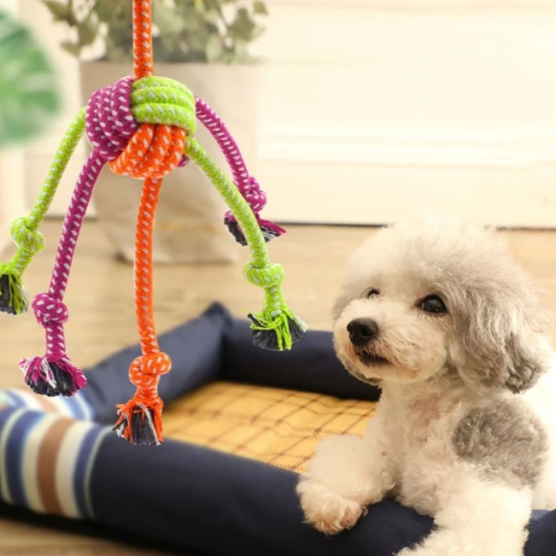 Juguete interactivo con nudo para perro, cuerda duradera resistente a mordeduras, juguetes para moler los dientes, juguete para limpiar los dientes, juguete para masticar con nudo para cachorro