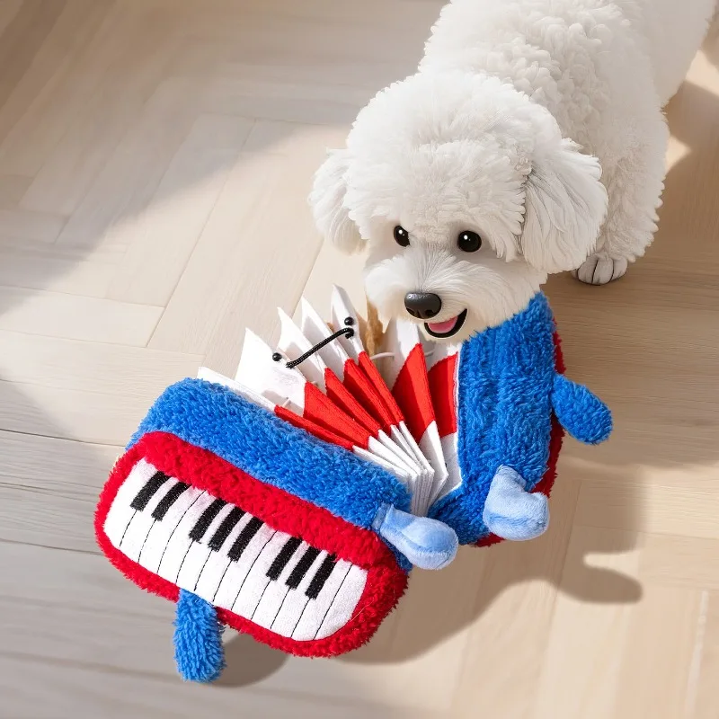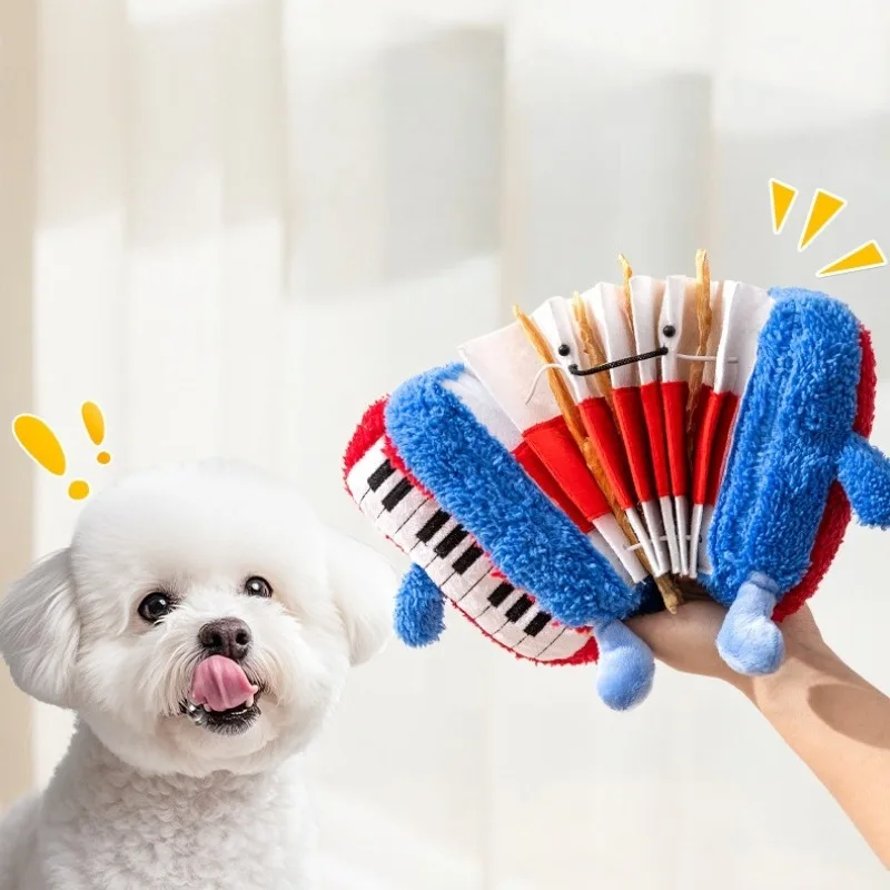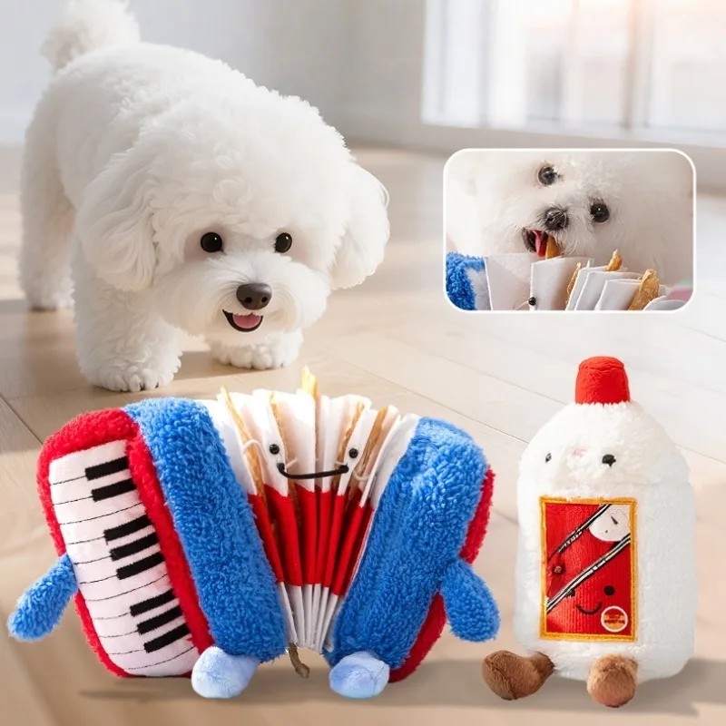 Juguete para mascotas con acordeón chirriante: rompecabezas para ocultar y tratar con sonido arrugado para gatos y perros, resistente a masticar para remolques y entrenar