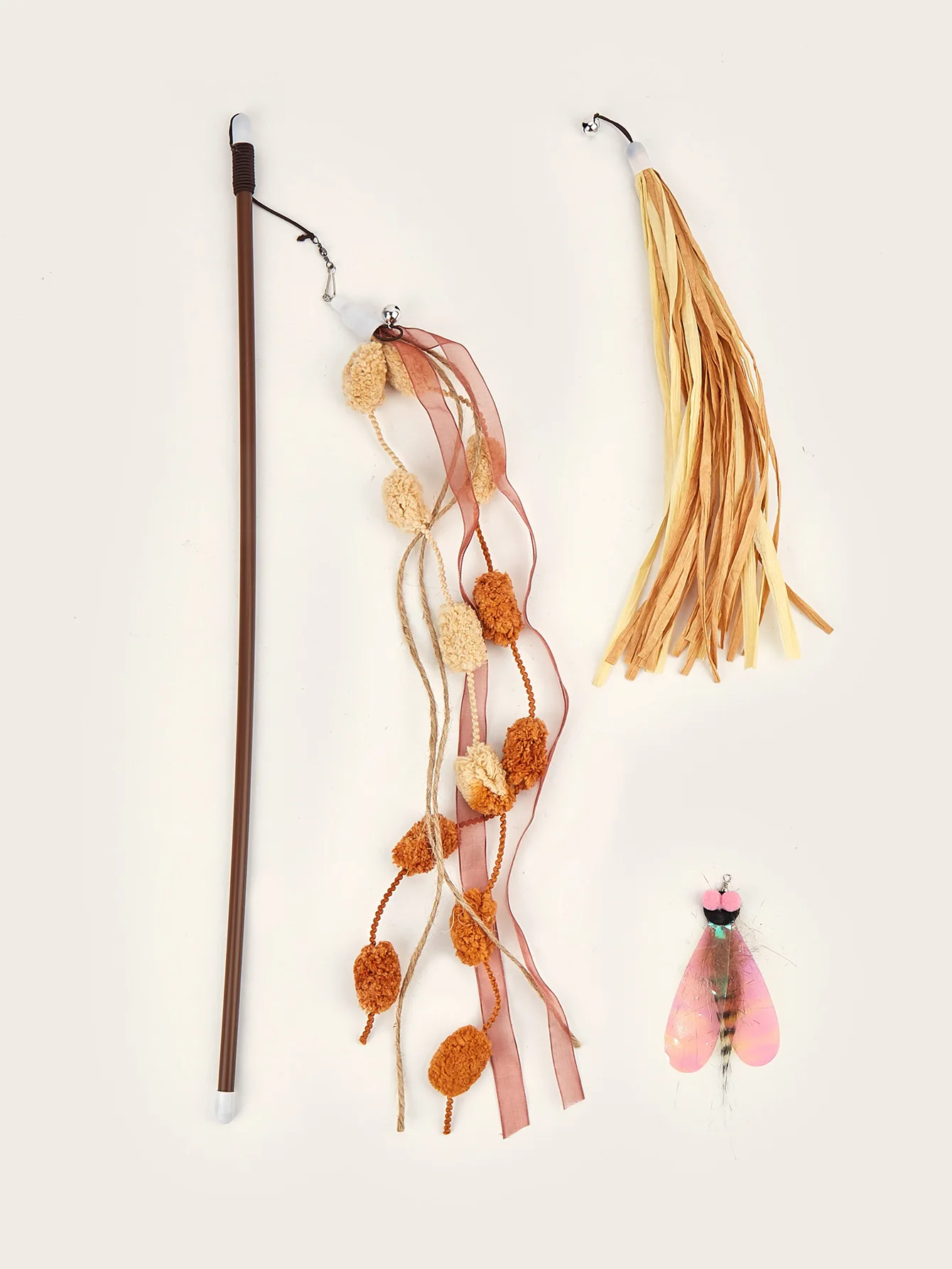 Juguetes para gatos, juego de palos de plumas para gatos, juguete interactivo para gatos, juego de 3 uds., bola, borla, juguetes para gatos, cabezal de repuesto, juguete para mascotas, suministros para mascotas
