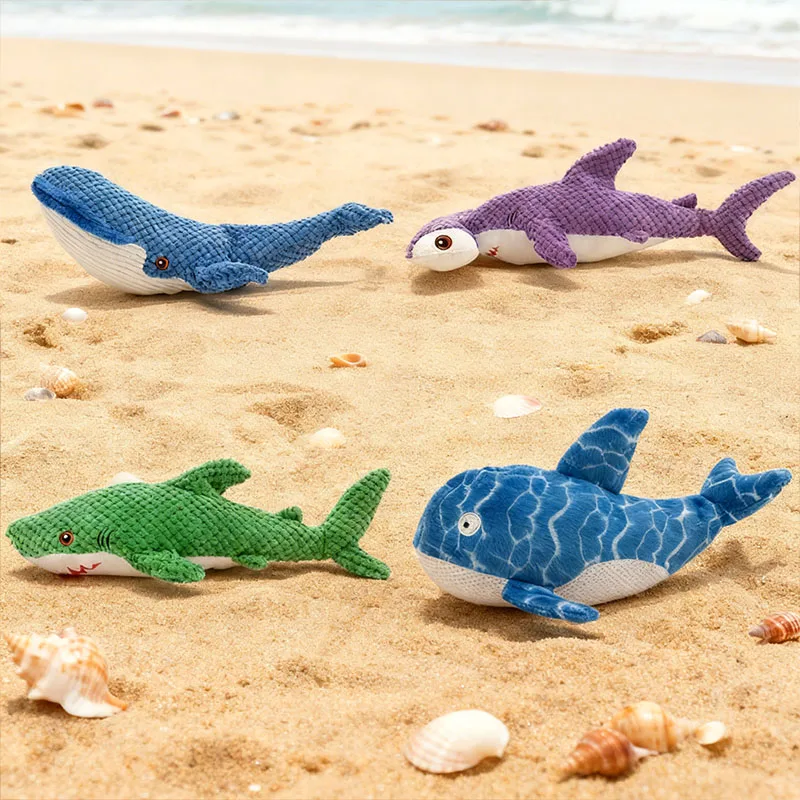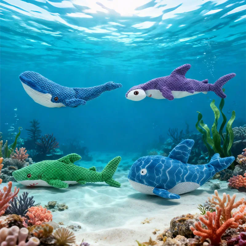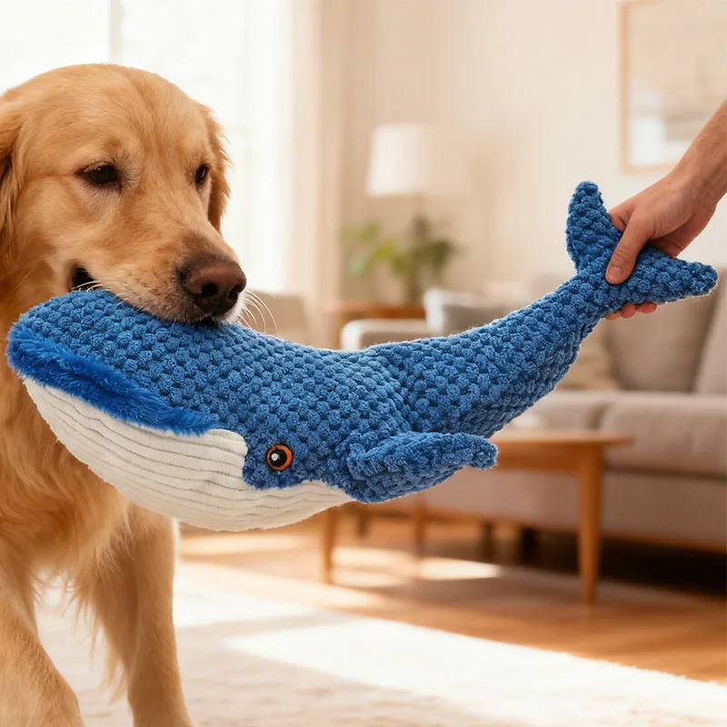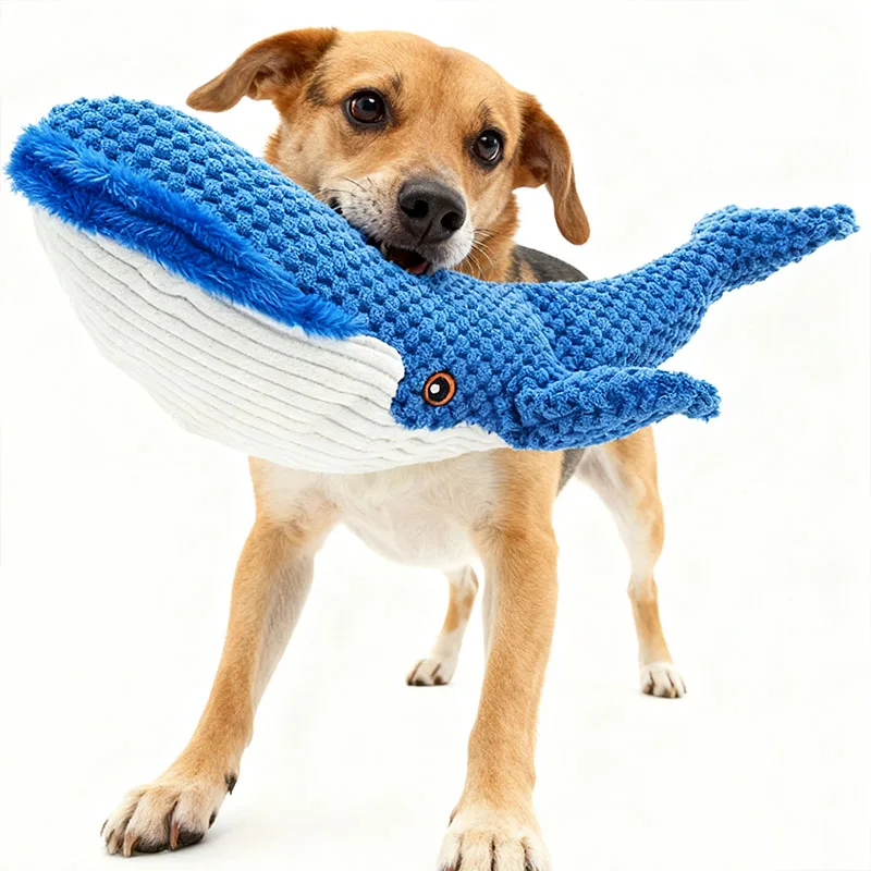 Juguetes grandes para perros de ballena azul, juguete Indestructible resistente de felpa con sonido grande para perros con chirriador, pequeños perros crudos, suministros para mascotas masticables para cachorros