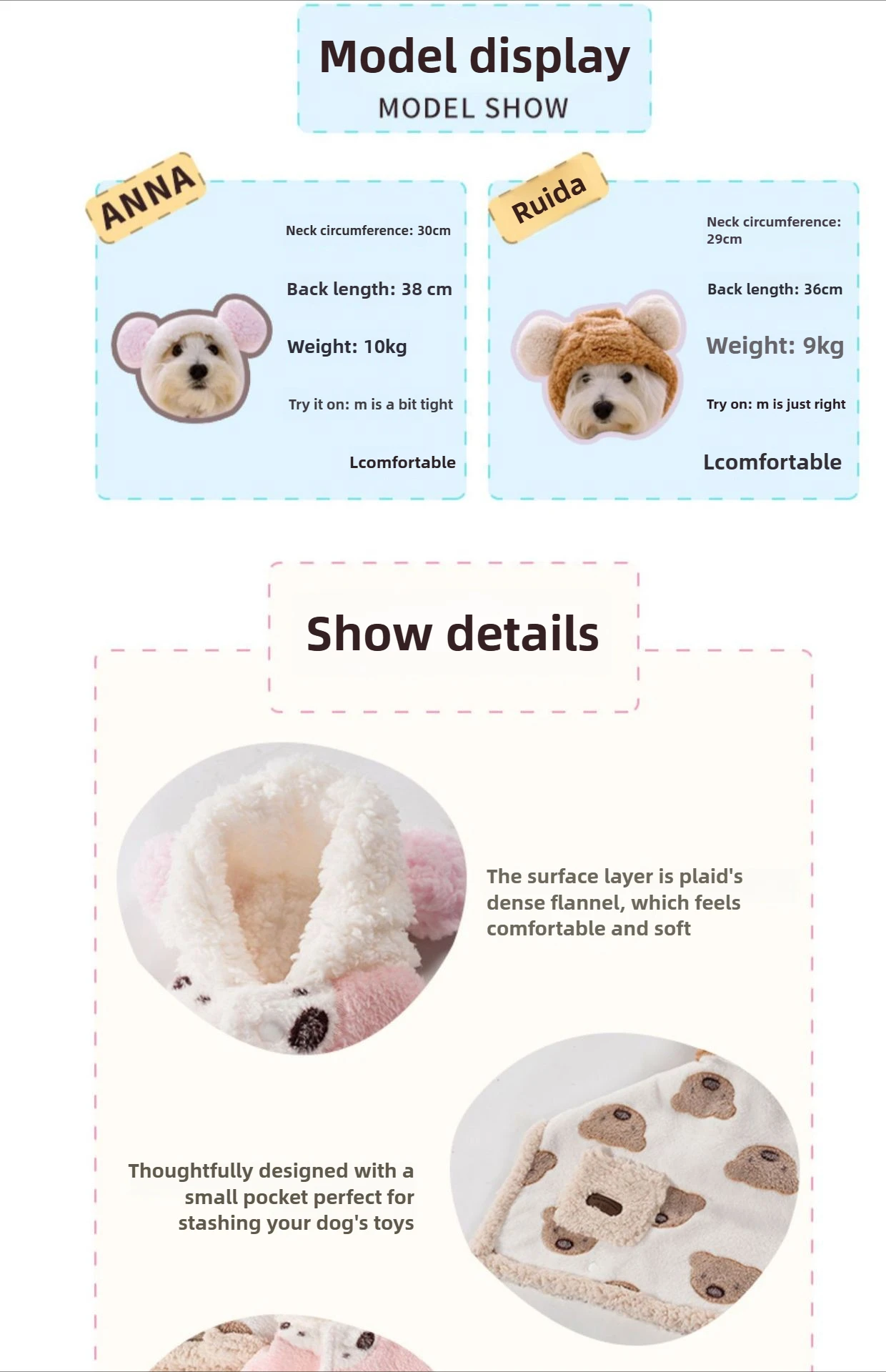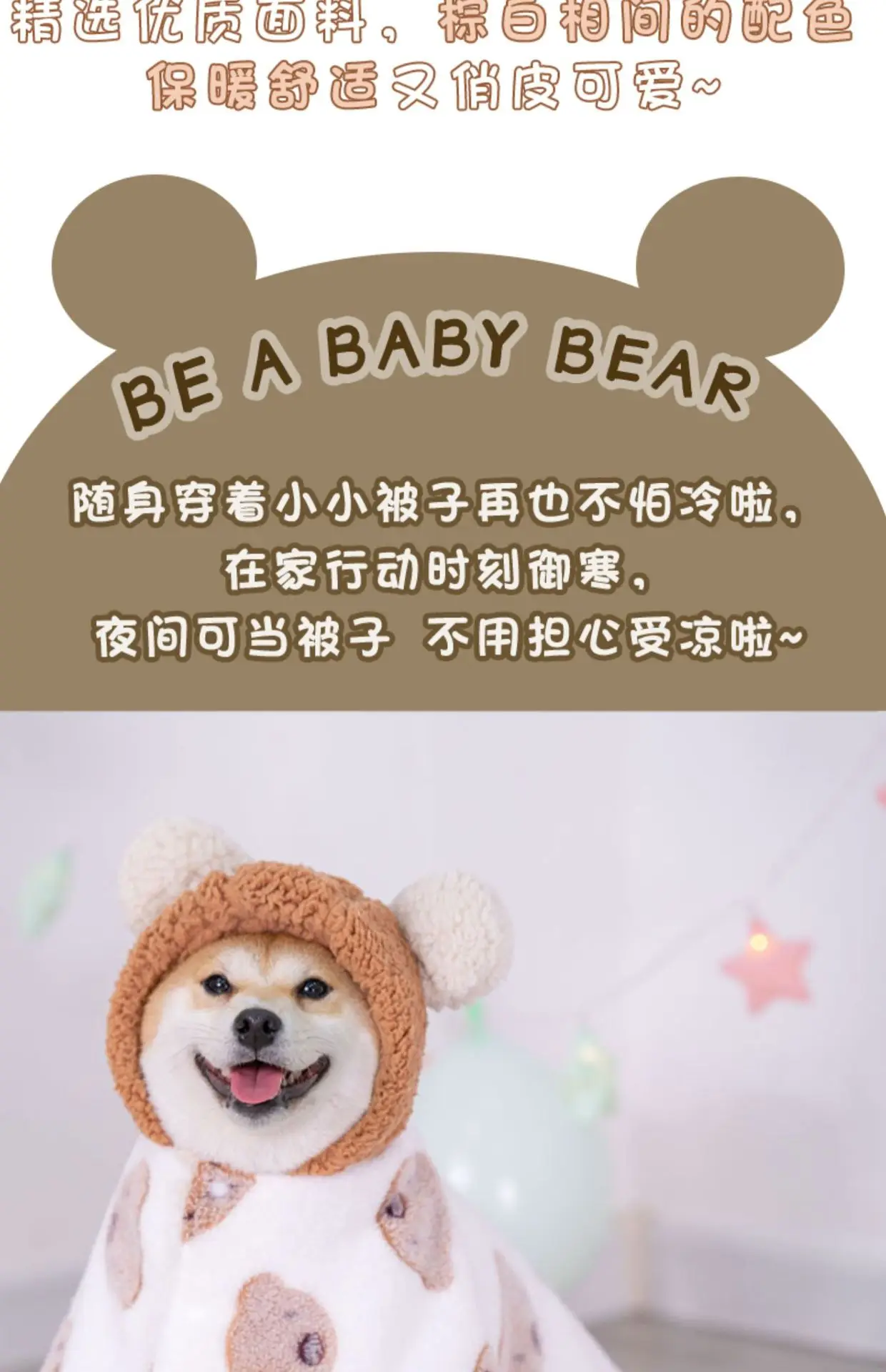 Manta para perro, colcha para dormir para mascotas, camisón de oso para salir, calidez de otoño e invierno, capa para perro pequeño, ropa, suéter, productos para mascotas