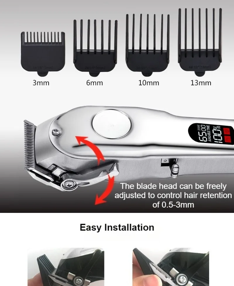 Accesorios del producto: caja de embalaje, manual, cuatro peines límite, un adaptador, una botella de aceite lubricante, un cepillo de limpieza