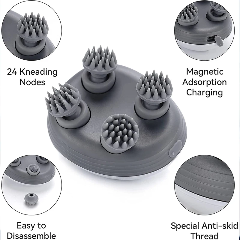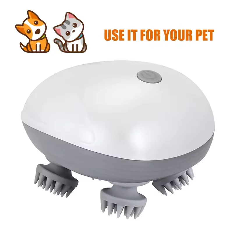 Masajeador eléctrico para mascotas y masajeador de cuero cabelludo para la cabeza, 4 cabezales de amasar, masaje de tejido profundo para gato, perro, hombro, cuello, 3 modos, recargable por USB, dispositivo portátil impermeable