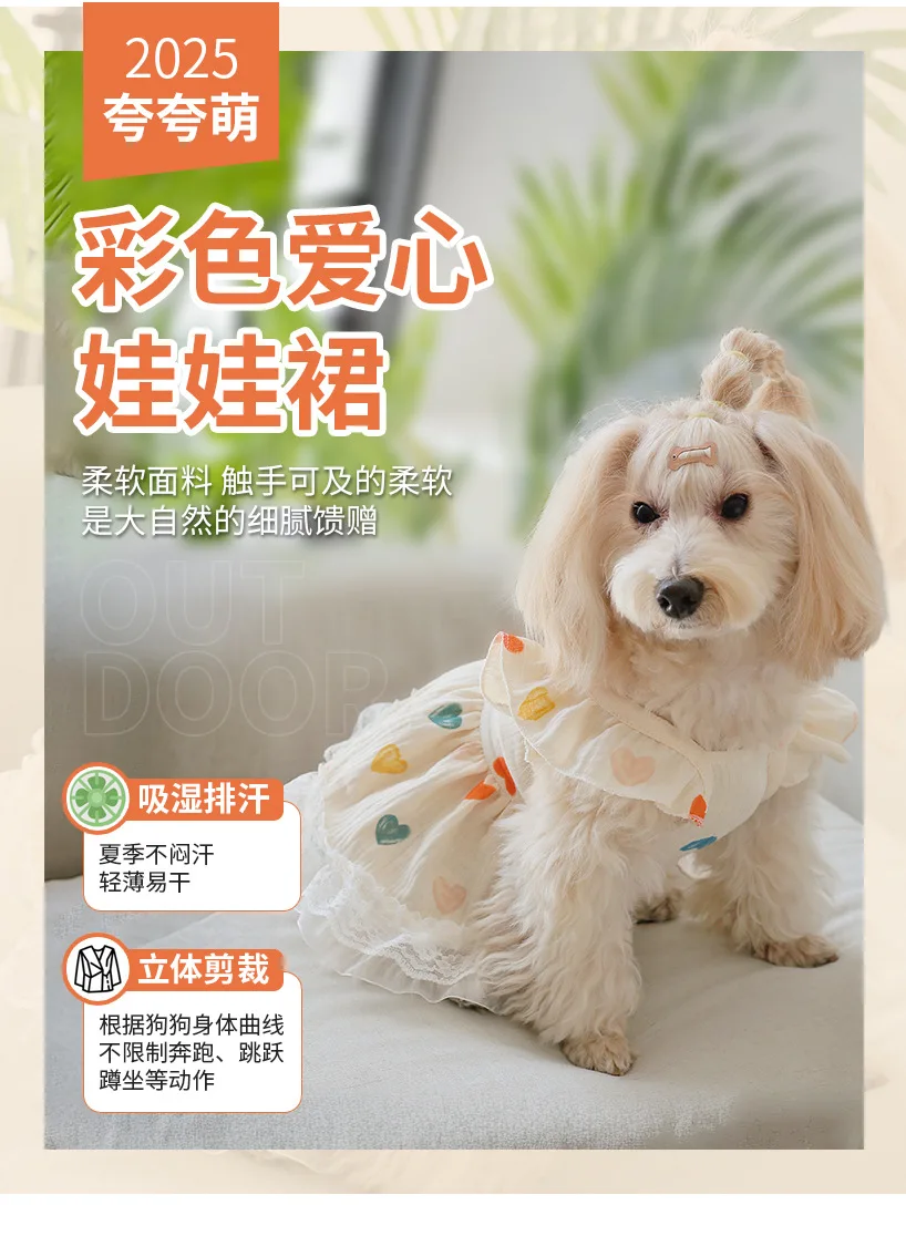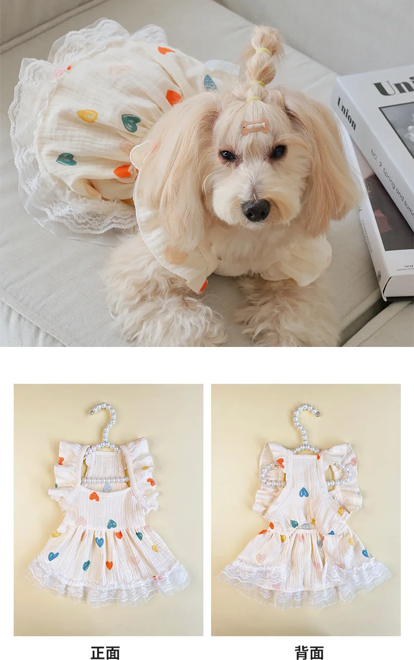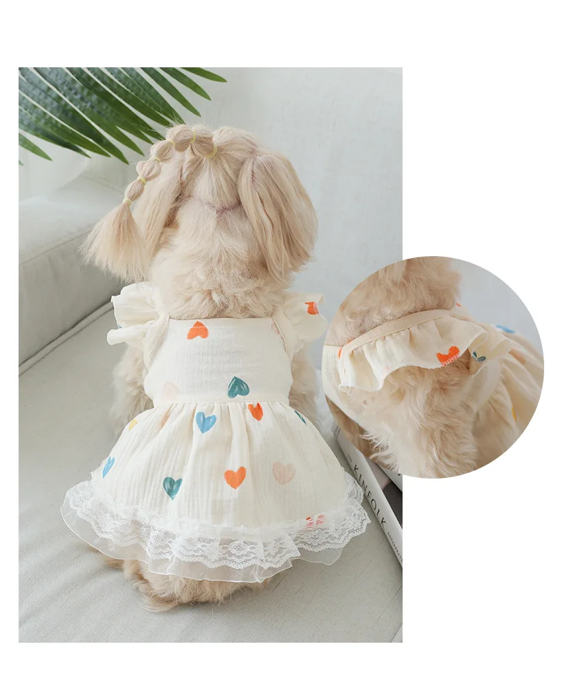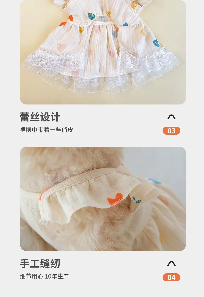 Material de hilo de algodón para bebé, falda de muñeca con manga voladora pequeña de amor amarillo claro, adecuada para perros gatos, para usar en todas las estaciones, suave