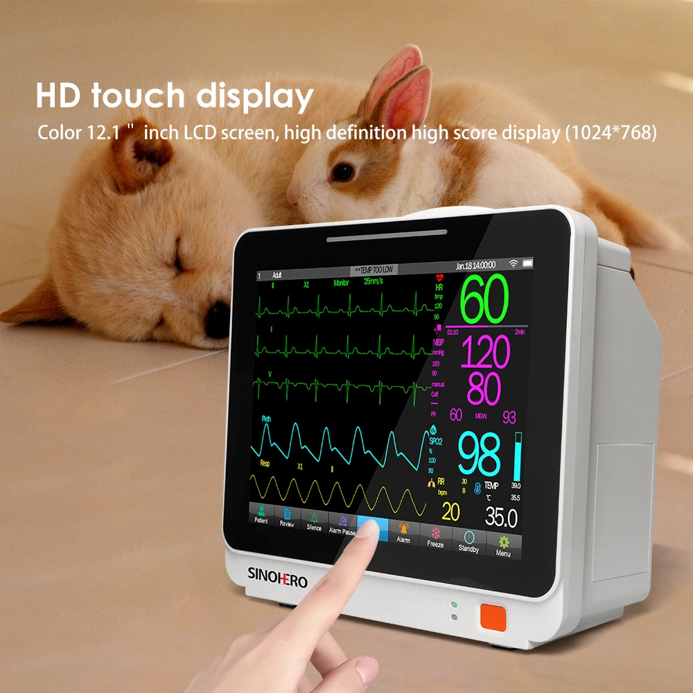 10) Simple: la pantalla a color de 12 pulgadas completamente táctil permite un monitoreo de signos vitales fácil de ver de un vistazo, para su comodidad, todas las operaciones solo por toque, sin otra tecla dura.También puede admitir diferentes operaciones de pantalla deslizante.