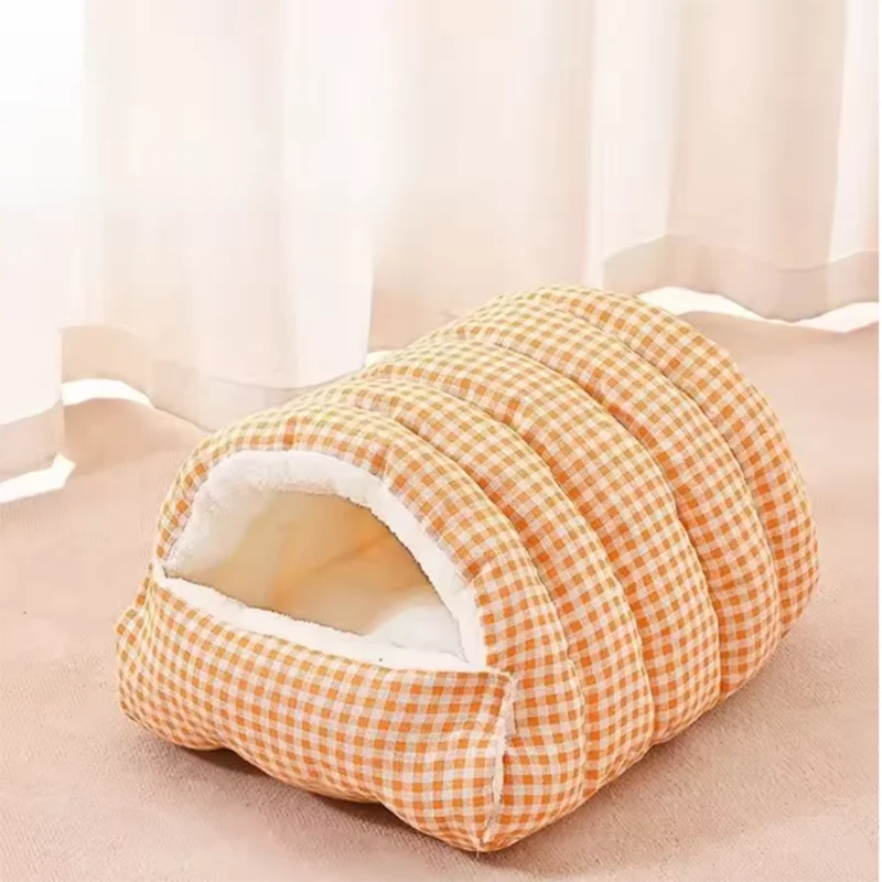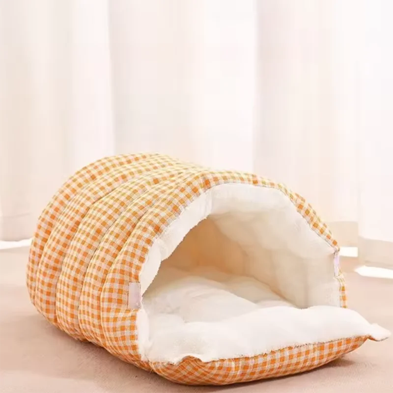 Nueva cama a cuadros para gatos, arena para cachorros cálida y acogedora, lavable, gruesa, de algodón, cerrada, suministros para mascotas