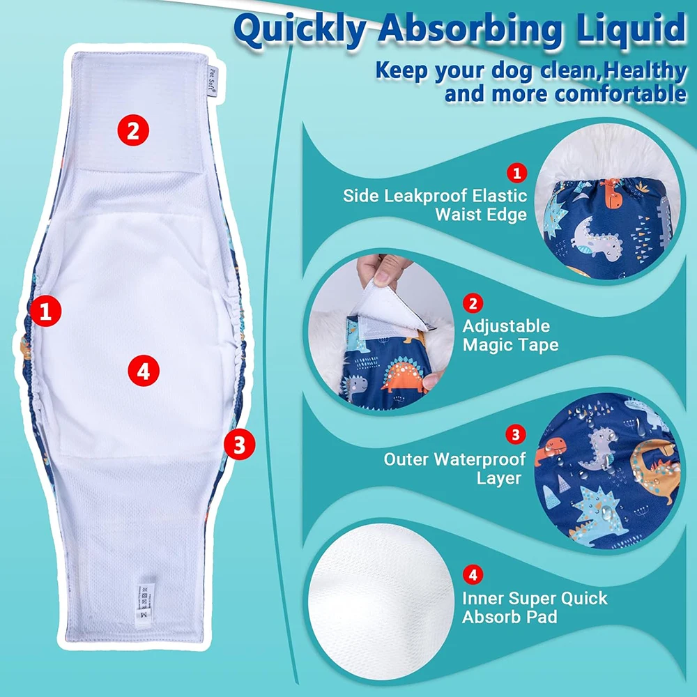 Pantalones cortos con estampado bonito para perros, pañales transpirables y reutilizables, bandas para el vientre para perros pequeños y medianos, ropa de esterilización para perros masculinos