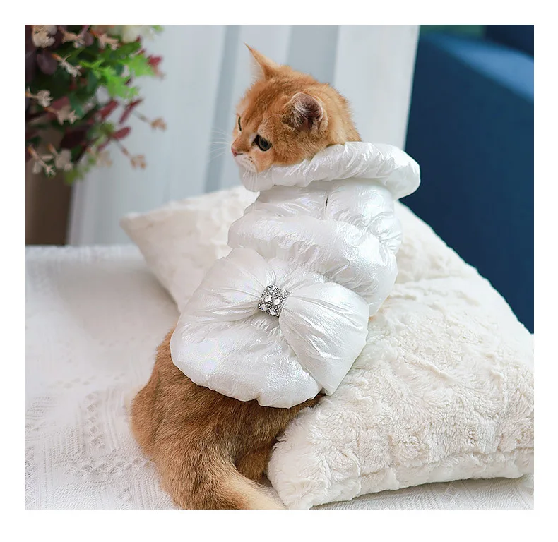 Parkas para perros, abrigo, chaleco, ropa para gatos, chaqueta de invierno para perros, ropa de cuello alto con lazo para mascotas, ropa para cachorros