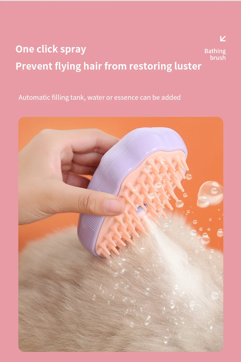 Reduzca el vello volador y la electricidad estática: este cepillo para gatos adopta un diseño de rociado de agua, que puede rociar suavemente agua nebulizada al peinar el cabello, haciendo que el pelo de las mascotas esté ligeramente húmedo y suavizando y eliminando mejor el pelo, especialmente en otoño e invierno, para evitar que el pelo de las mascotas sea difícil de peinar debido a la electricidad estática.