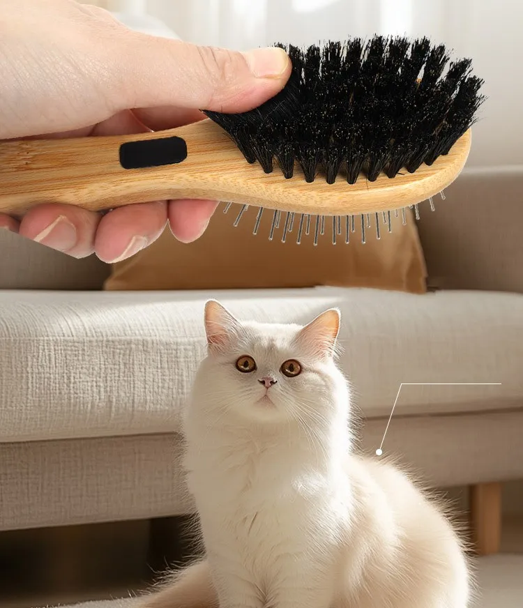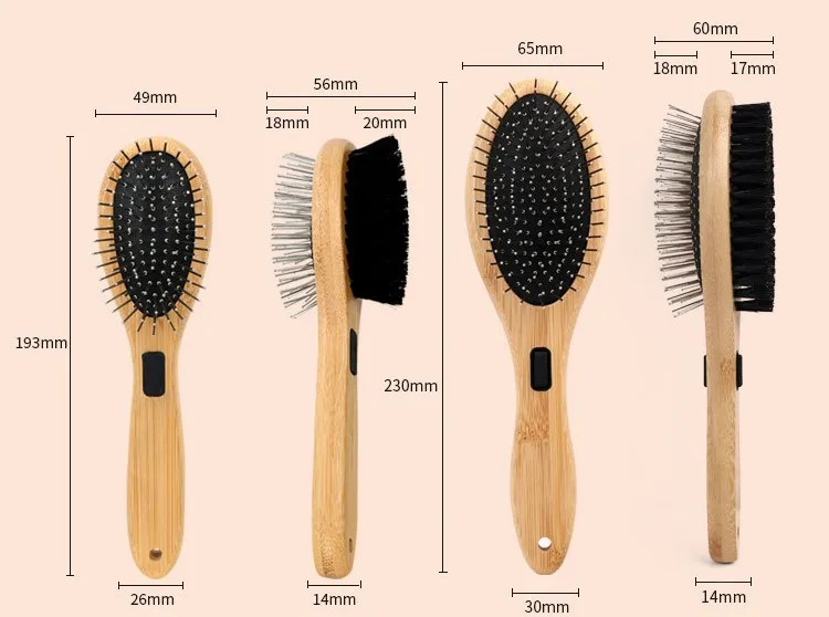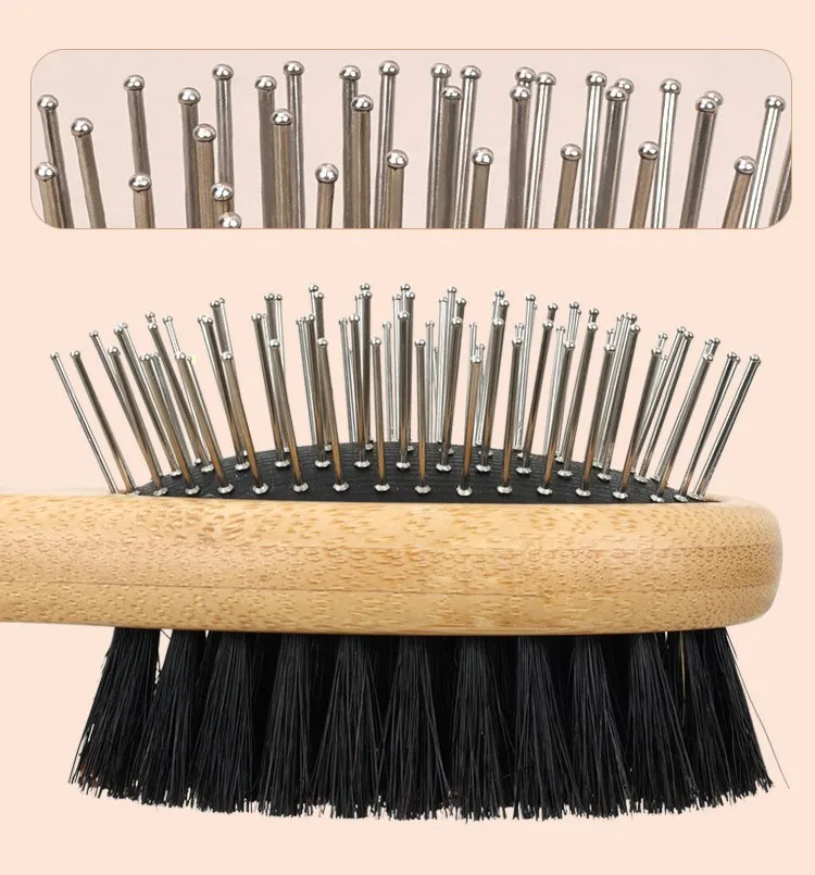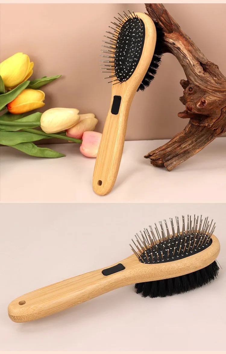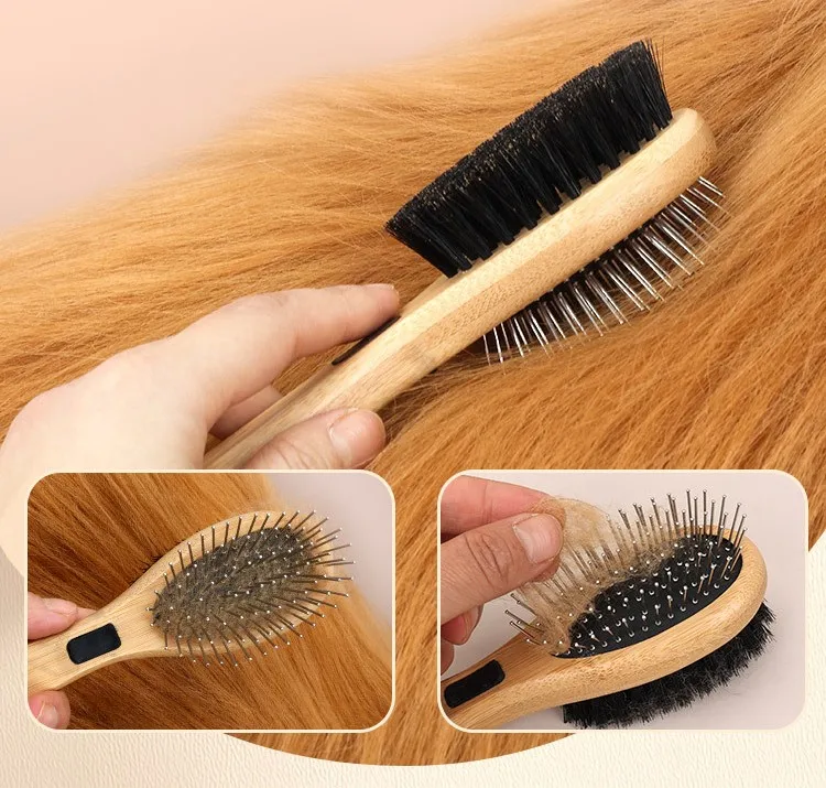 Peine para perros, cepillo de doble cara para perros, cepillo de bambú para el cuidado de perros, removedor de pelo para mascotas, peines de masaje para cepillos de limpieza de nudos de pelo de gato