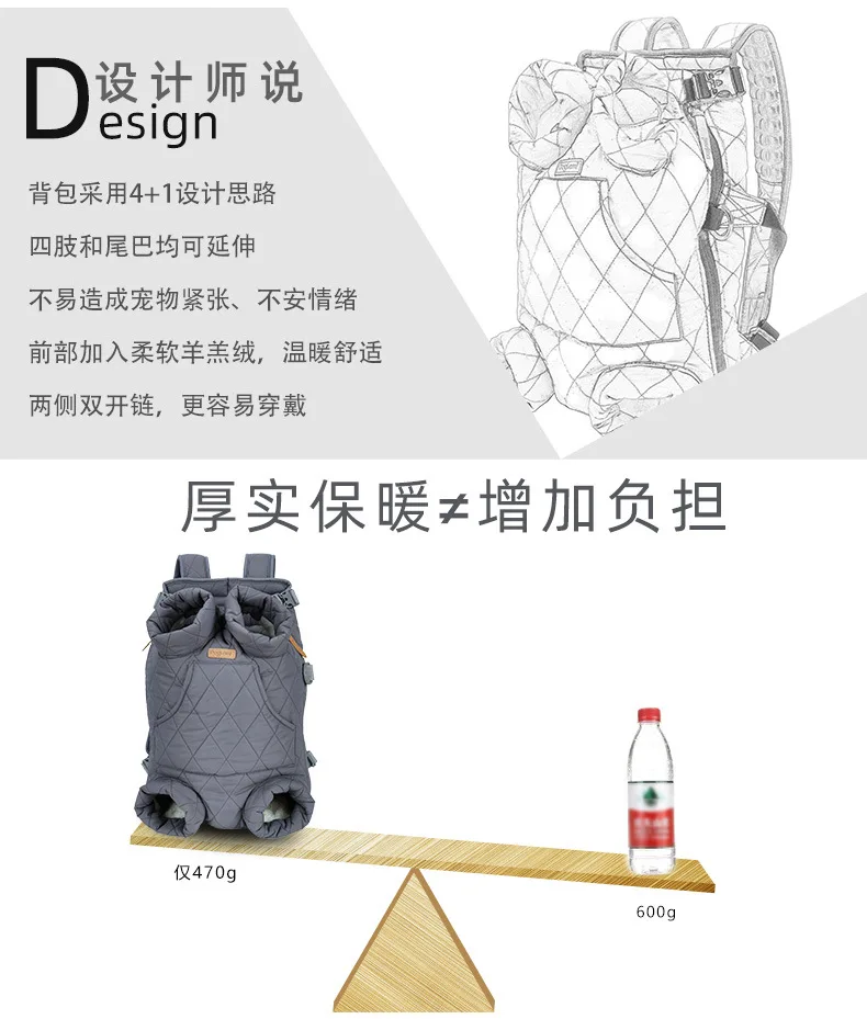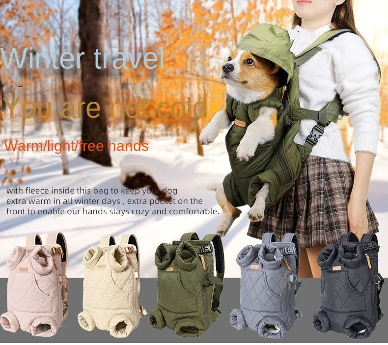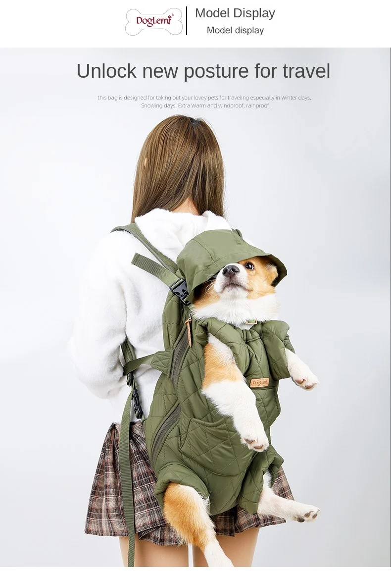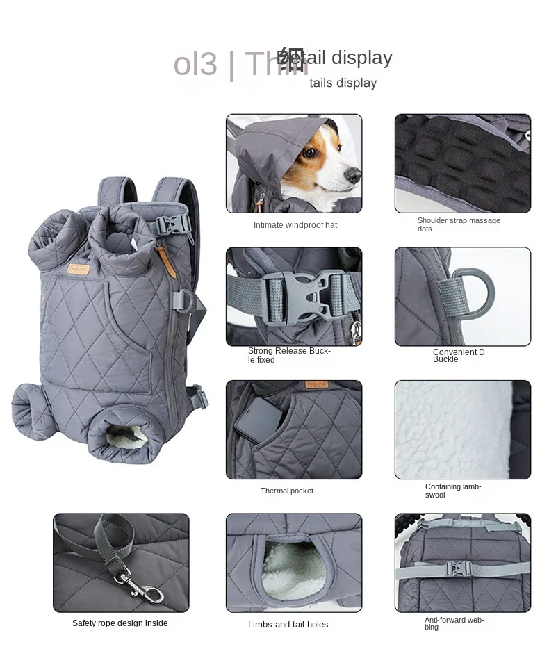 thickened pet carrying backpack in winter, chest shoulder bag, hands free, warm, rain proof, snow proof dog bag for Small and medium-sized cats and dogs