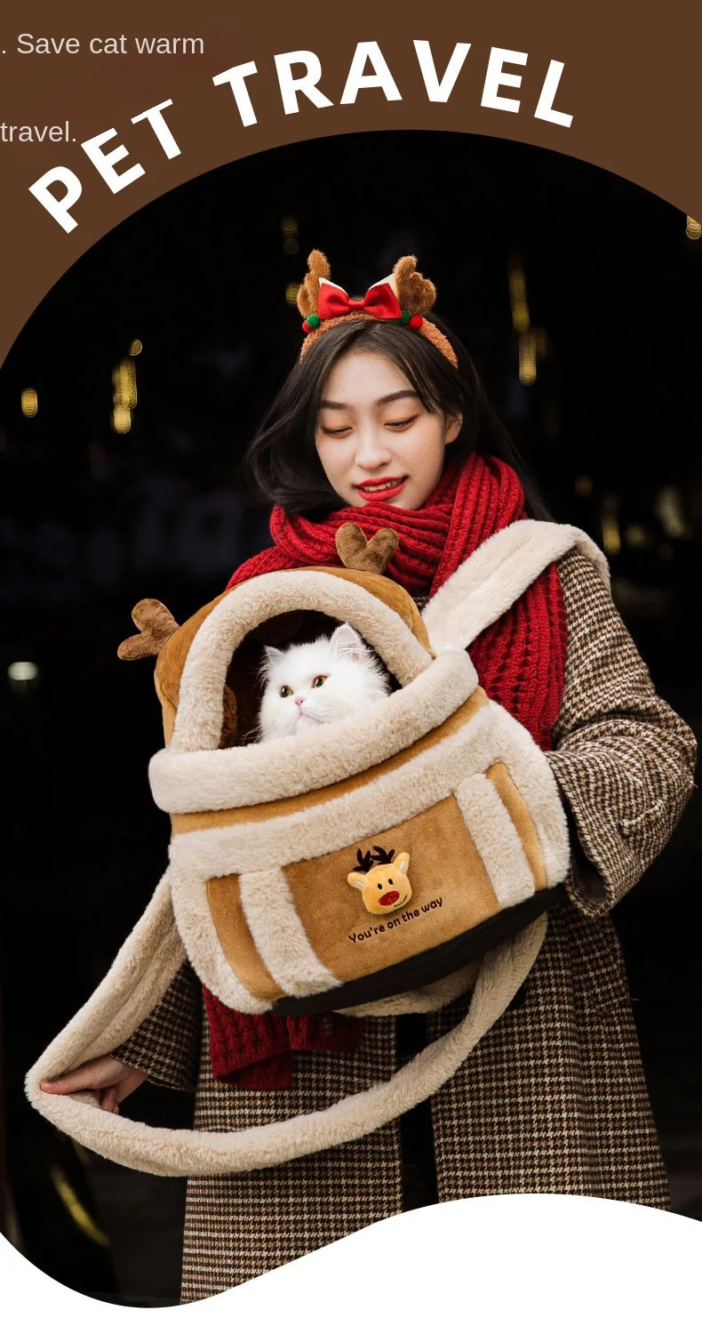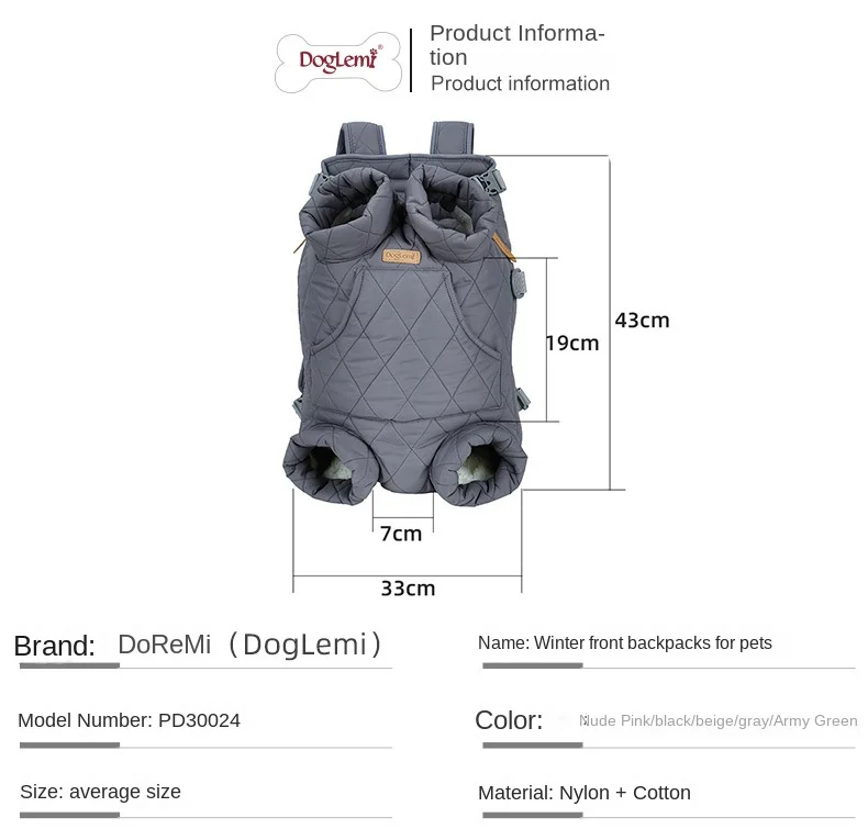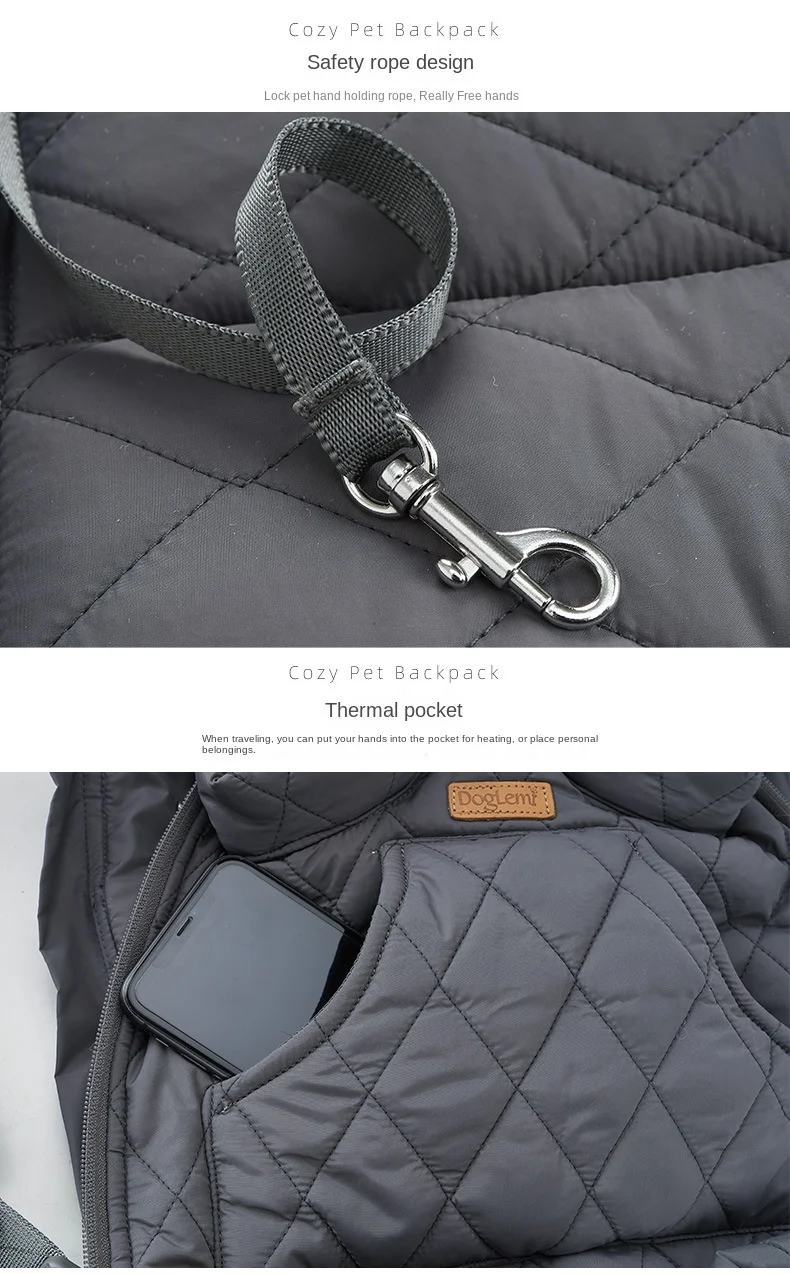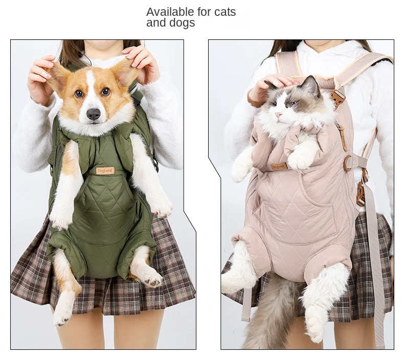 thickened pet carrying backpack in winter, chest shoulder bag, hands free, warm, rain proof, snow proof dog bag for Small and medium-sized cats and dogs