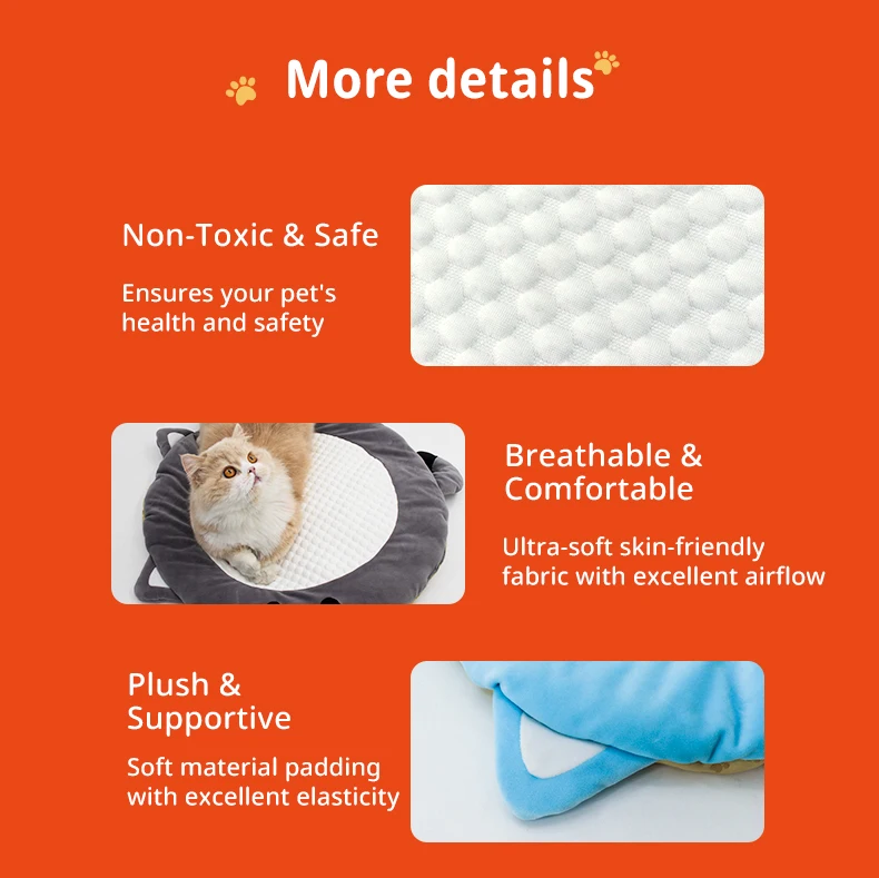 La cama cuenta con un material de núcleo suave que proporciona una excelente disipación del calor, manteniendo a su mascota fresca y cómoda durante el clima cálido.