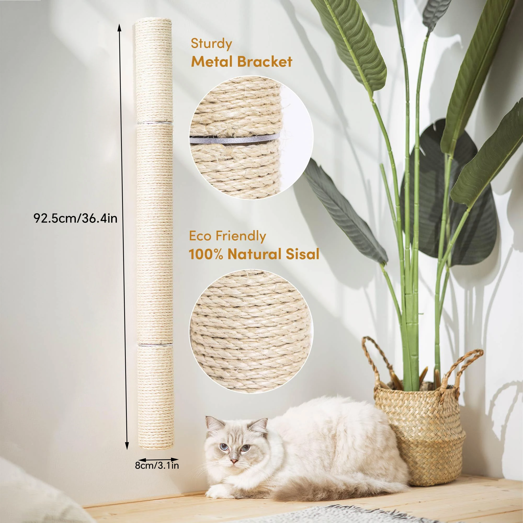 Poste rascador para gatos montado en la pared, cuerda de Sisal, poste de árbol para gatos para interiores, torre para gatos que ahorra espacio, Protector de muebles para gatos para gatitos