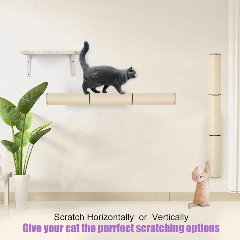 Poste rascador de madera maciza para gatos con cuerda de Sisal, árboles para gatos montados en la pared, estante de escalada para gatos, muebles para rascar juguetes