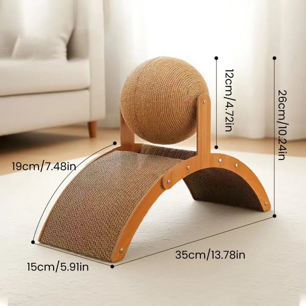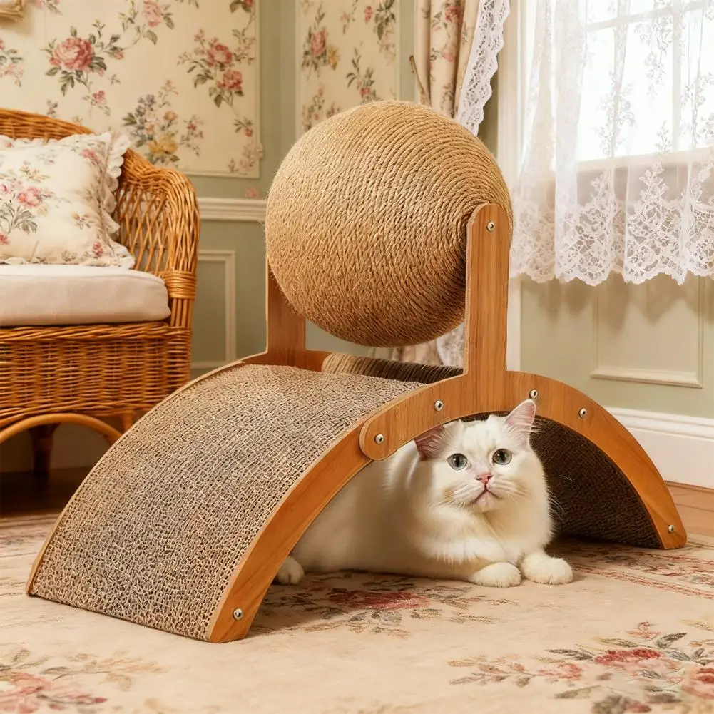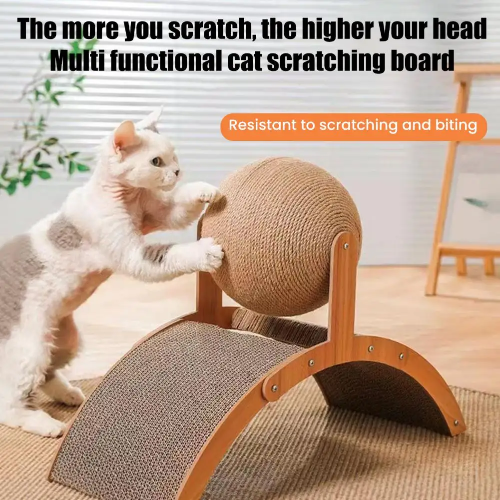 Rascador para gatos 3 en 1, almohadilla para rascar de cartón con bola de Sisal, marco de madera, rascador arqueado para gatitos de interior para gatos activos, rascar, jugar escalada