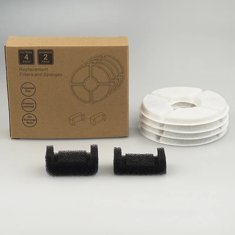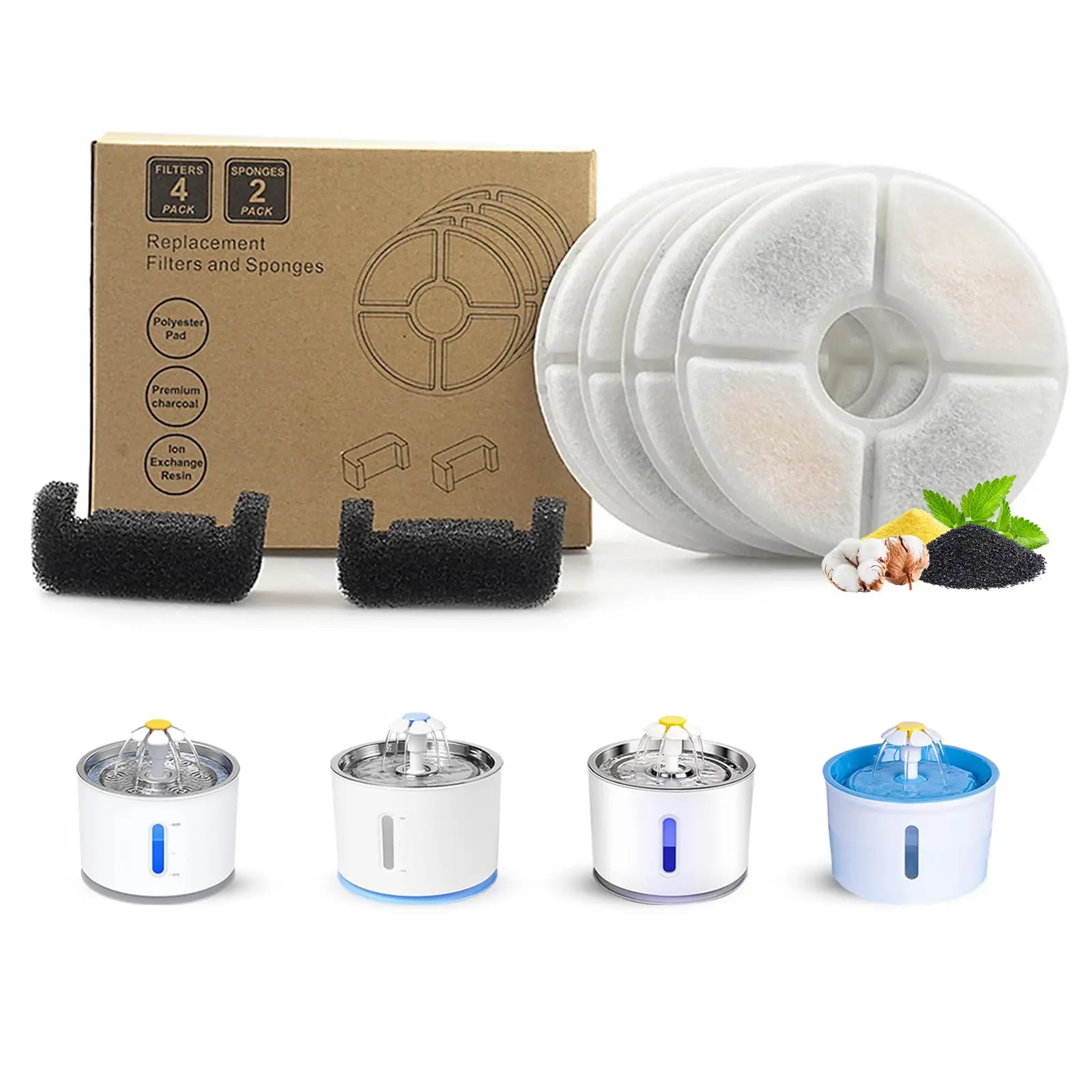 Reemplazo de filtro de fuente de agua para gatos, juego de filtros de carbón redondos para sistema de filtración múltiple de fuente automática para mascotas superior de 2,4 L