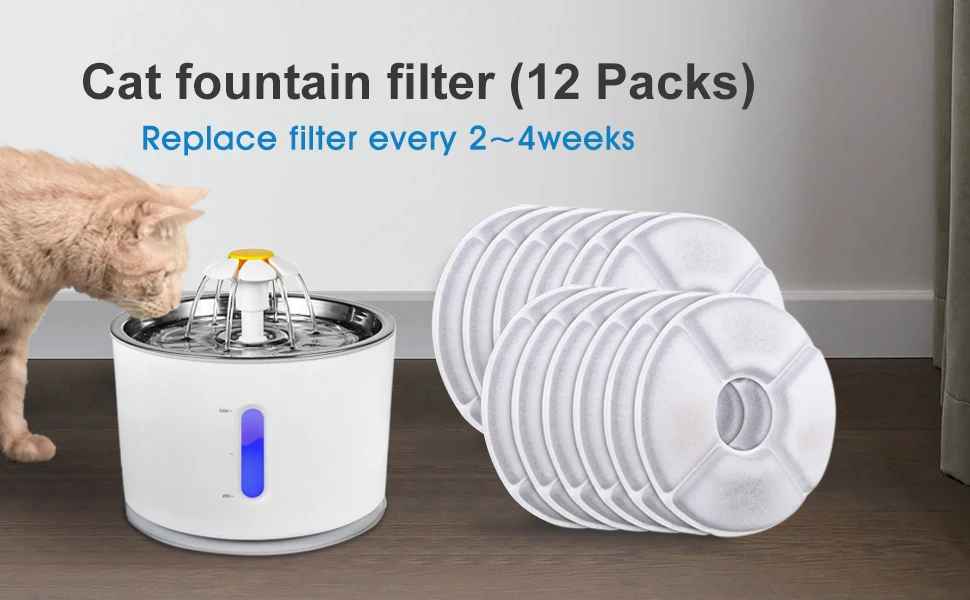 【Reemplazo regular】Se recomienda reemplazar el filtro cada 2-4 semanas, dependiendo de la cantidad de gatos en su hogar, y mientras tanto, limpie la fuente y la bomba para prolongar la vida útil.