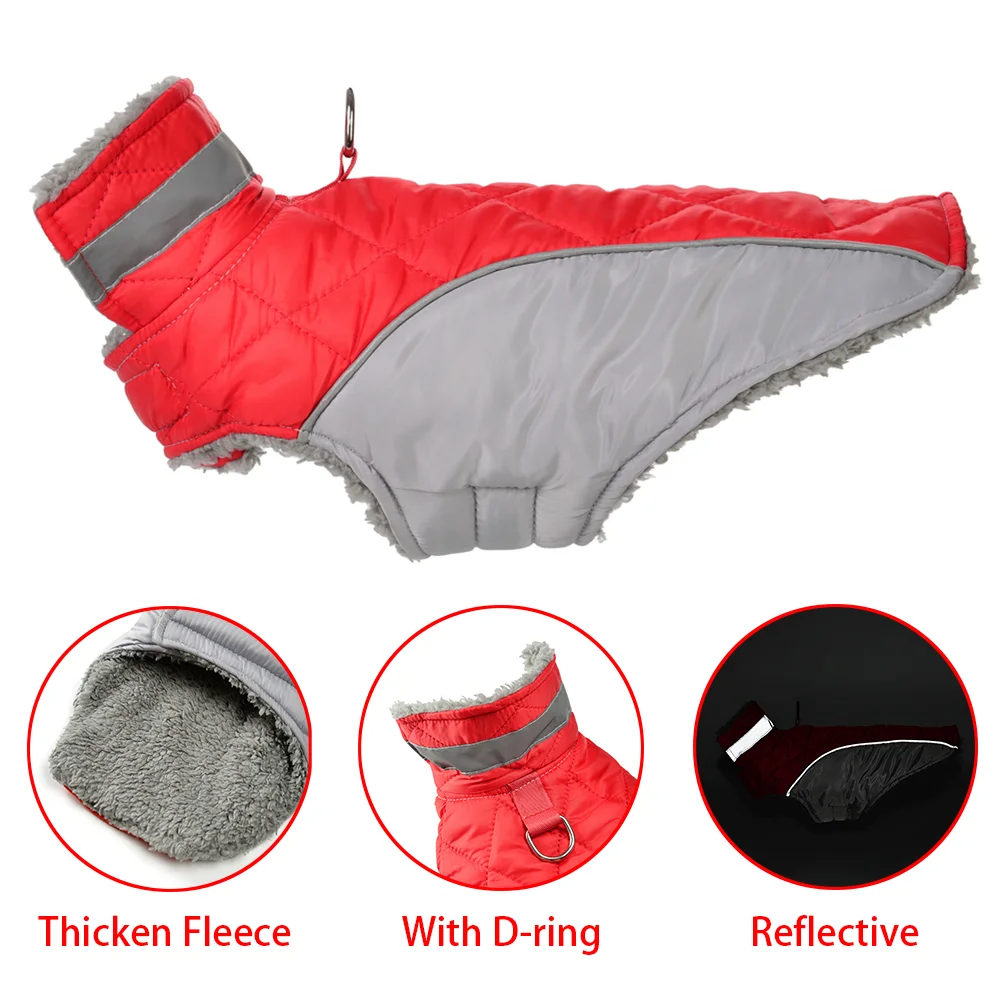 Producto: ropa gruesa para perros, abrigo reflectante para mascotas, trajes cálidos de lana para mascotas, chaqueta impermeable para cachorros