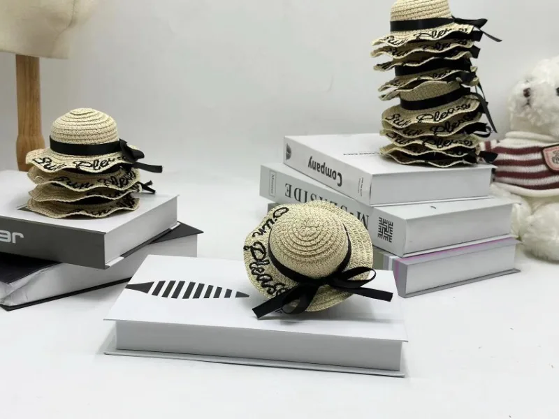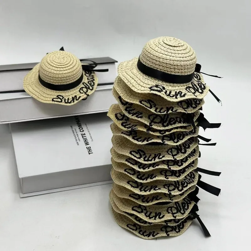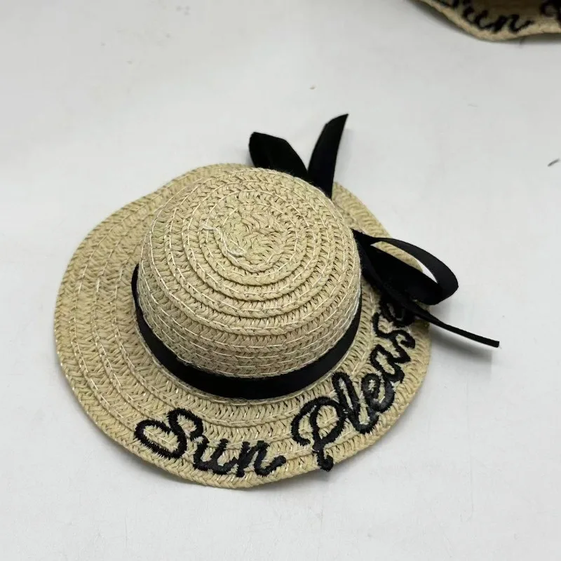 Sombreros de verano para mascotas, gorros artísticos de paja con protección solar, productos de sombrero de viaje con lazo, accesorios de decoración en miniatura creativos, gorros para perros y gatos