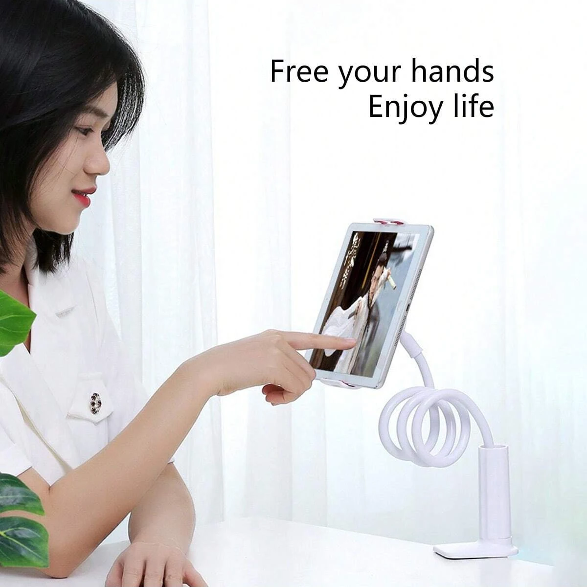 El soporte de brazo perezoso ajustable permite un fácil ajuste, asegurando que su dispositivo permanezca seguro en su lugar.