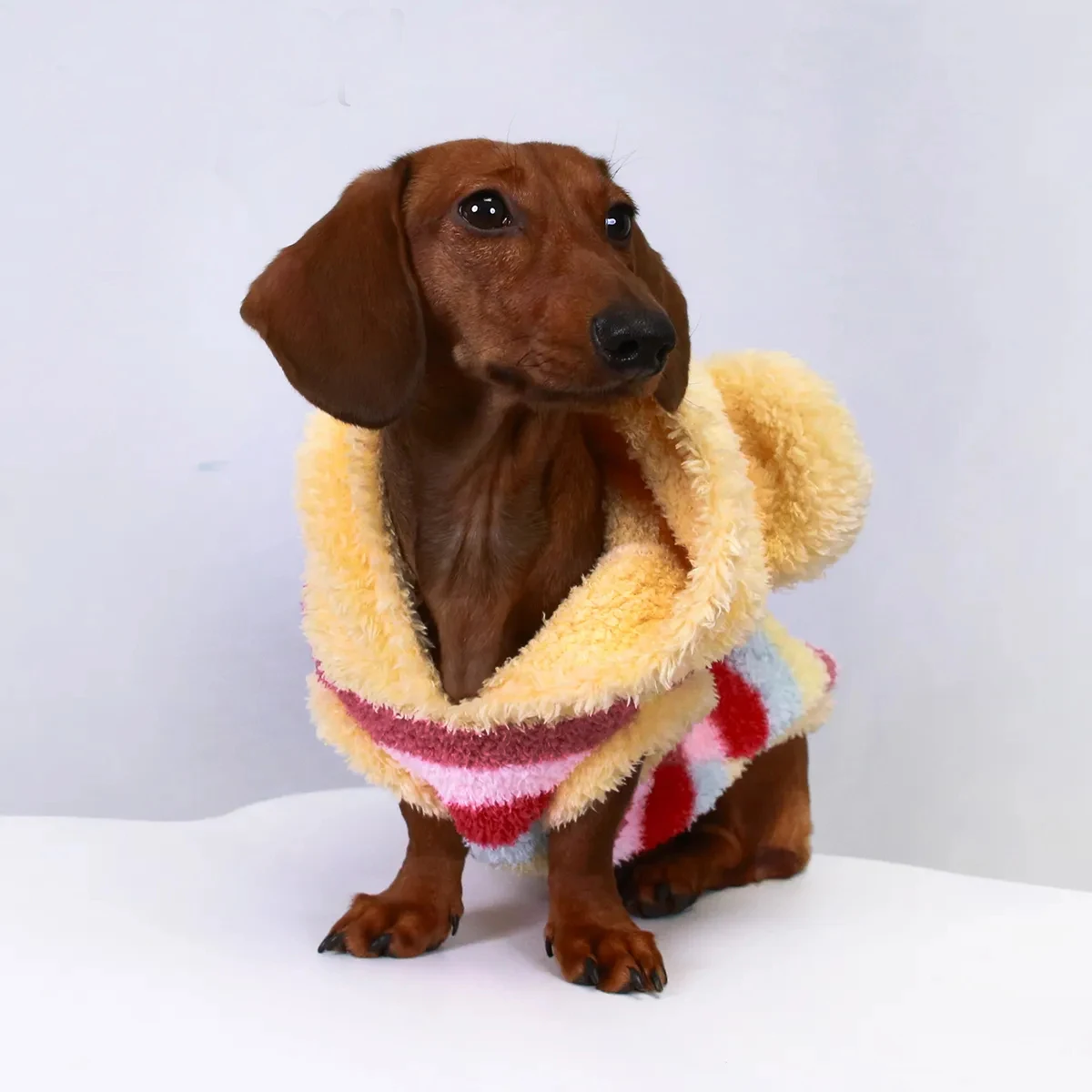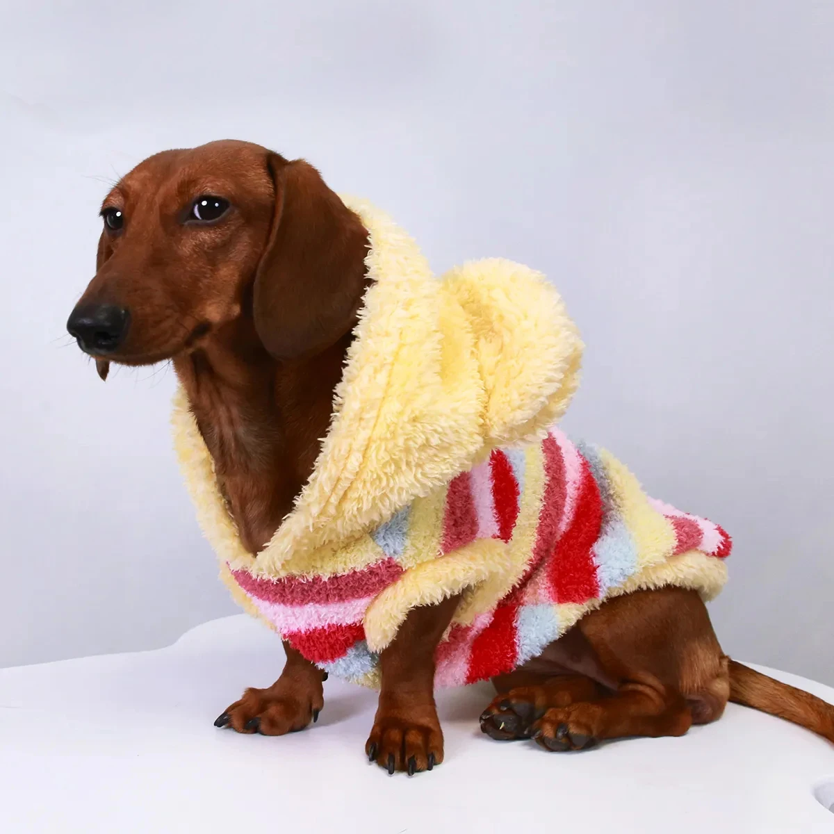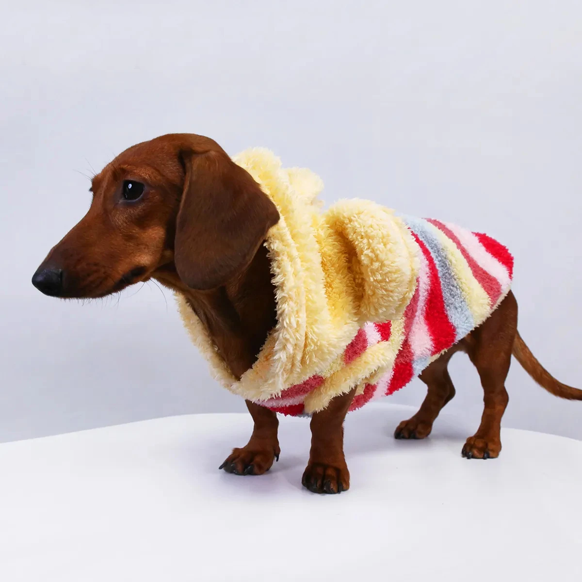 Sudadera con capucha de lana gruesa de arco iris para perros Wiener, abrigo de manga corta para perros con insignia en invierno, ropa de descanso suave para Dachshund