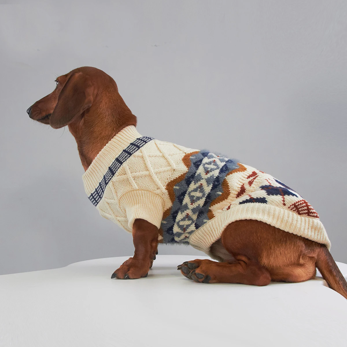 Suéter de forro polar suave blanco para perros Wiener, mono bohemio de manga corta de otoño para perros tejados, chaleco de invierno para perros Dachshund