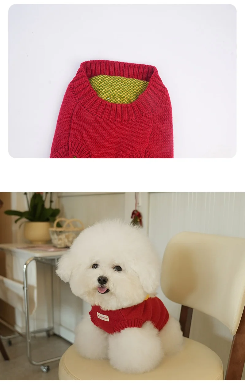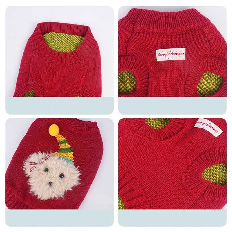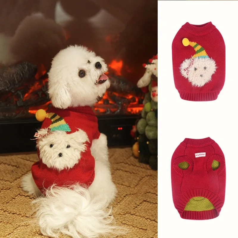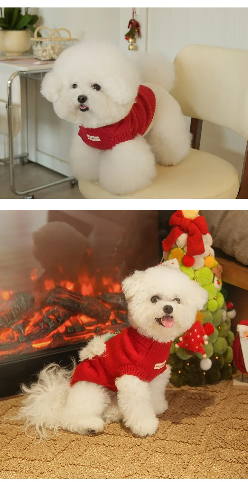 Suéter de Navidad grueso para perros, ropa para mascotas para Otoño e Invierno, chaleco tejido rojo para mascotas, jersey para mascotas, prendas de punto, ropa cálida para perros