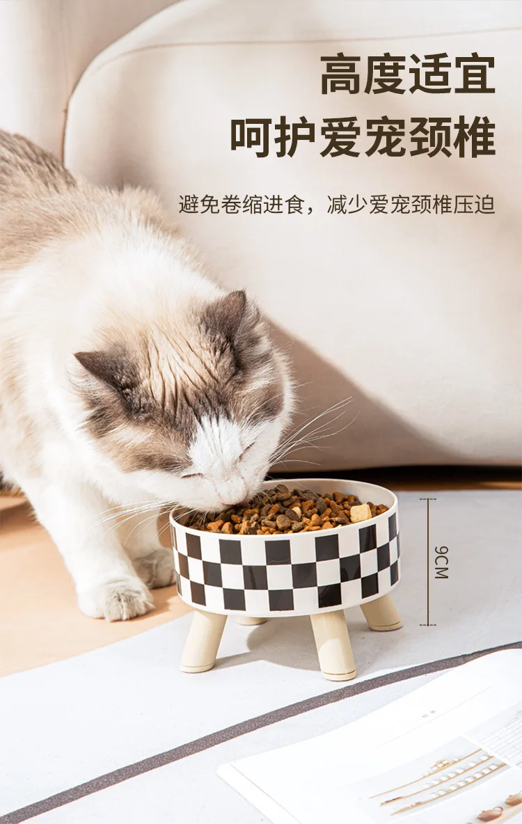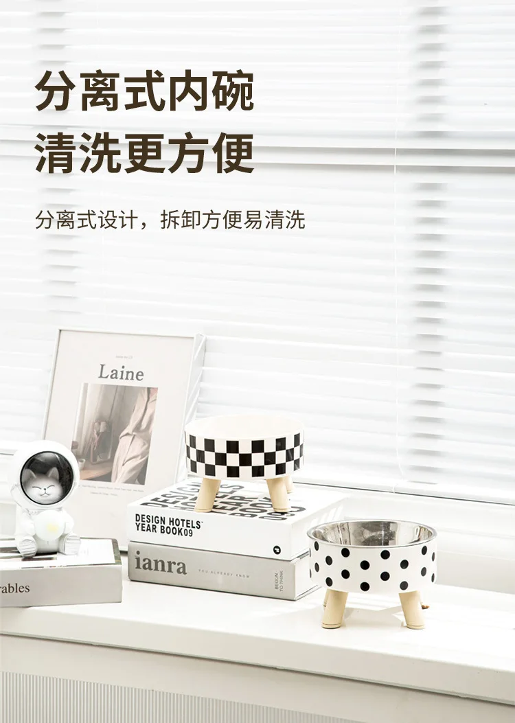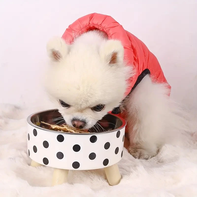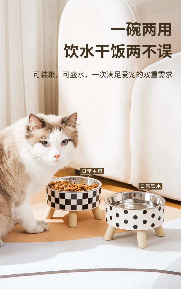Tazón de comida para mascotas, tablero de ajedrez de puntos blancos y negros, acero inoxidable, alimentación elevada para mascotas, suministros para beber