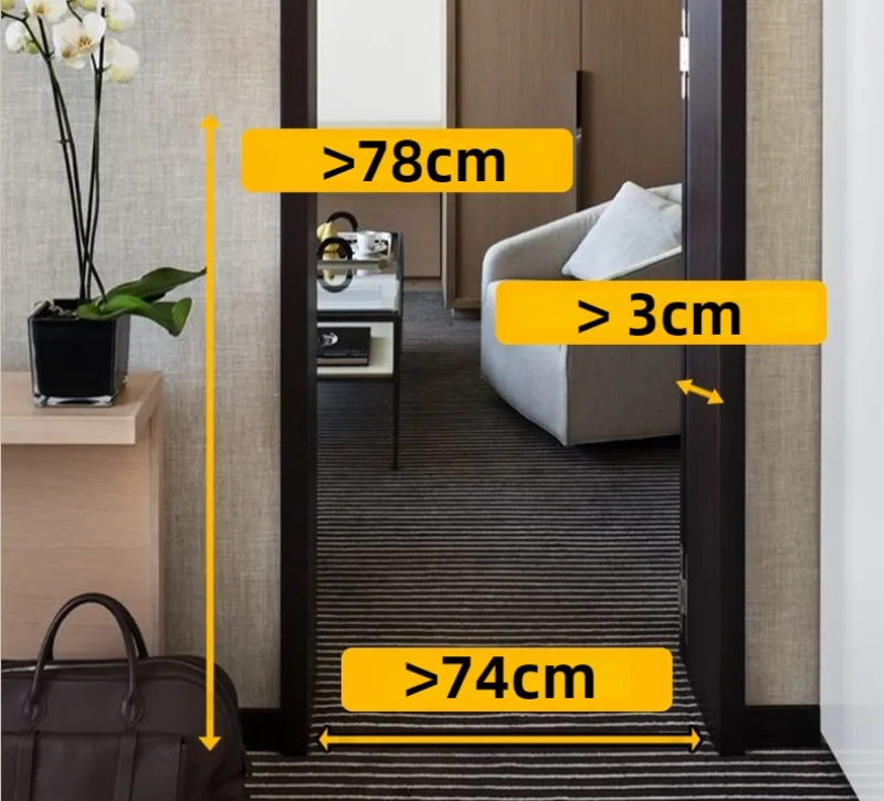 2. Las cuatro esquinas donde el riel de la puerta está fijo deben ser sólidas y firmes; No se recomienda instalarlo en lugares como gabinetes o sofás donde podría moverse.