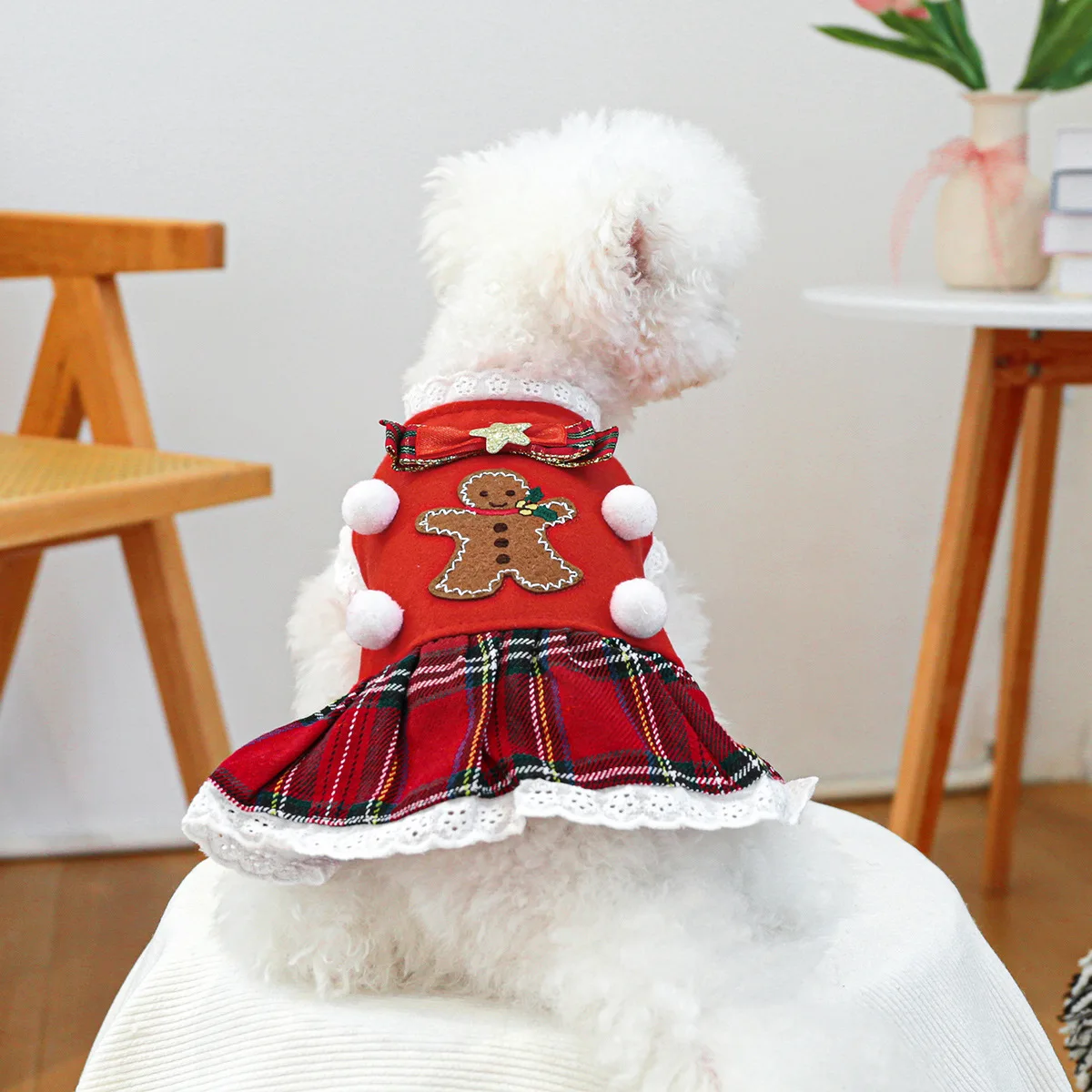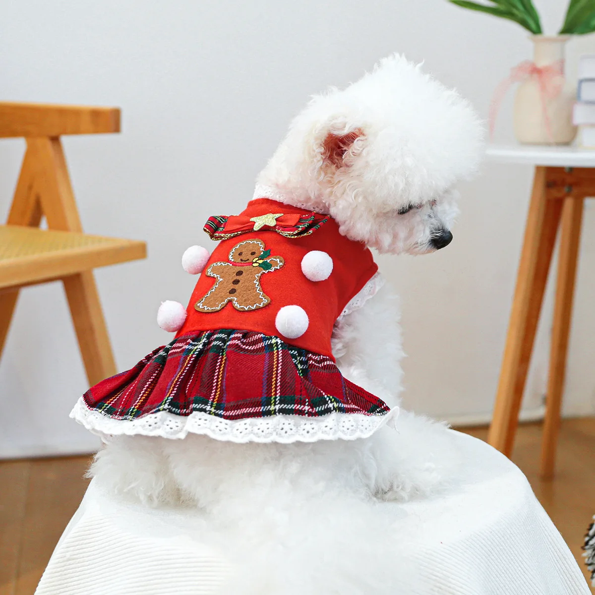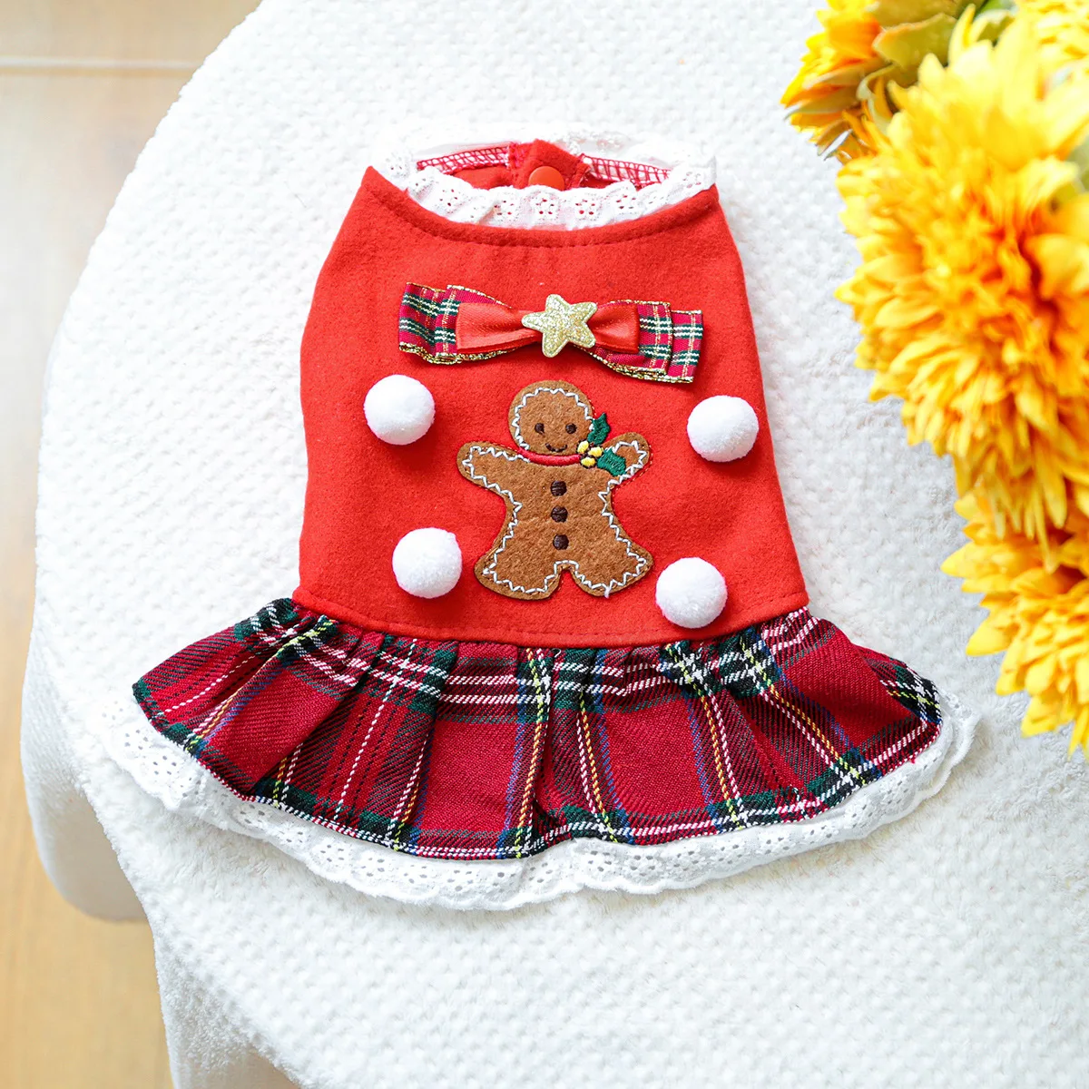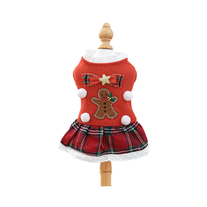 Vestido de encaje de felpa de Navidad para mascotas, abrigo de lana con falda a cuadros para perros y gatos pequeños