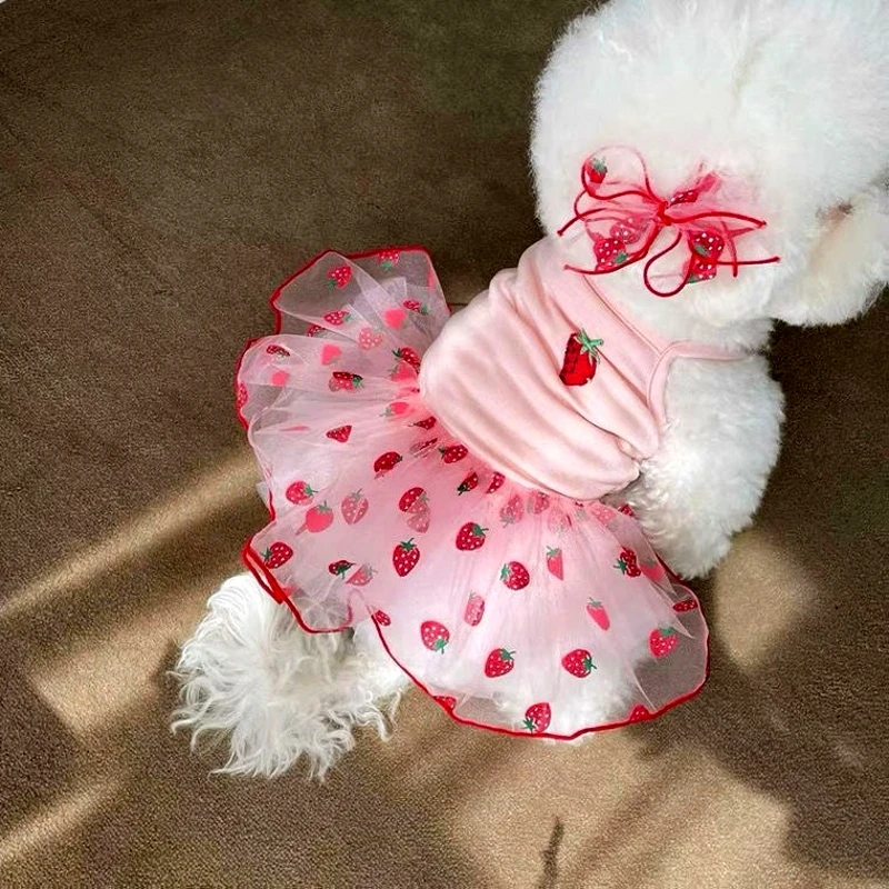 Vestido de fresa de verano para perro, ropa para mascotas, falda con tirantes para perro, ropa para perro, perro, estampado bonito, vestido de malla para perro, suministros para mascotas