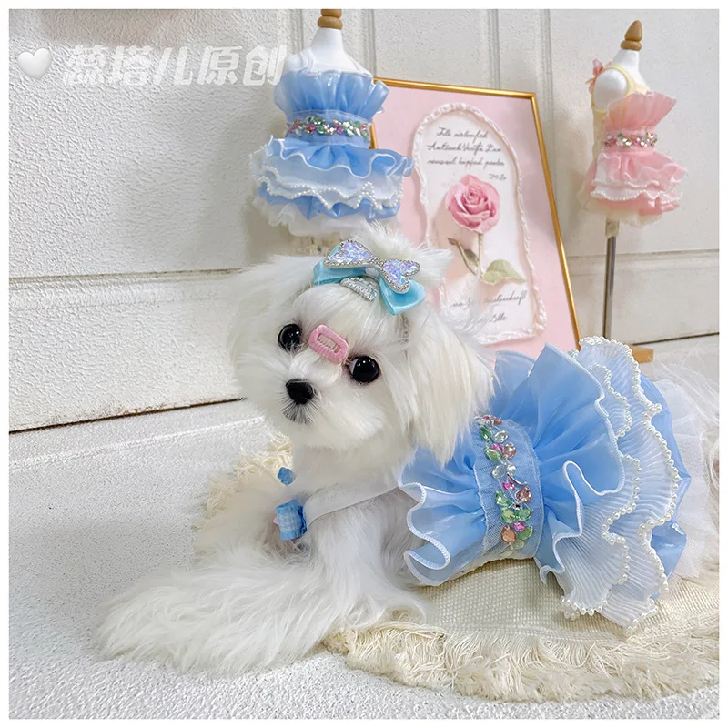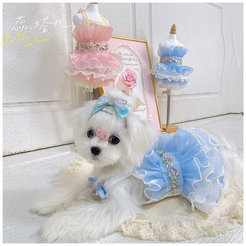 Vestido de princesa de malla para mascotas, vestido de Yorkshire, camisola de encaje, falda acampanada, chaleco para perros, vestidos para perros pequeños, ropa para cachorros