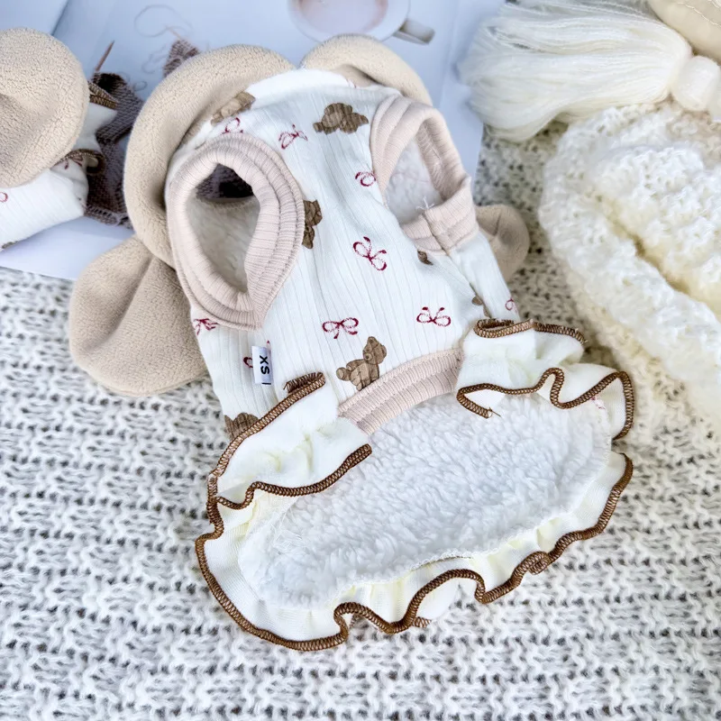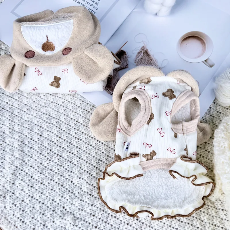 Vestido de terciopelo de encaje para mascotas, abrigo para perros pequeños y gatos, chaleco grueso de invierno, ropa para perros pequeños, ropa para cachorros