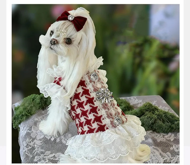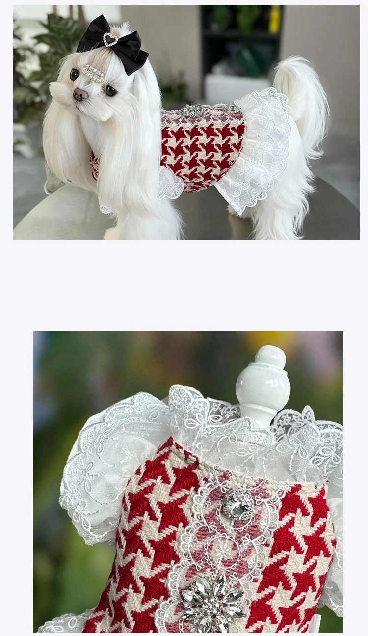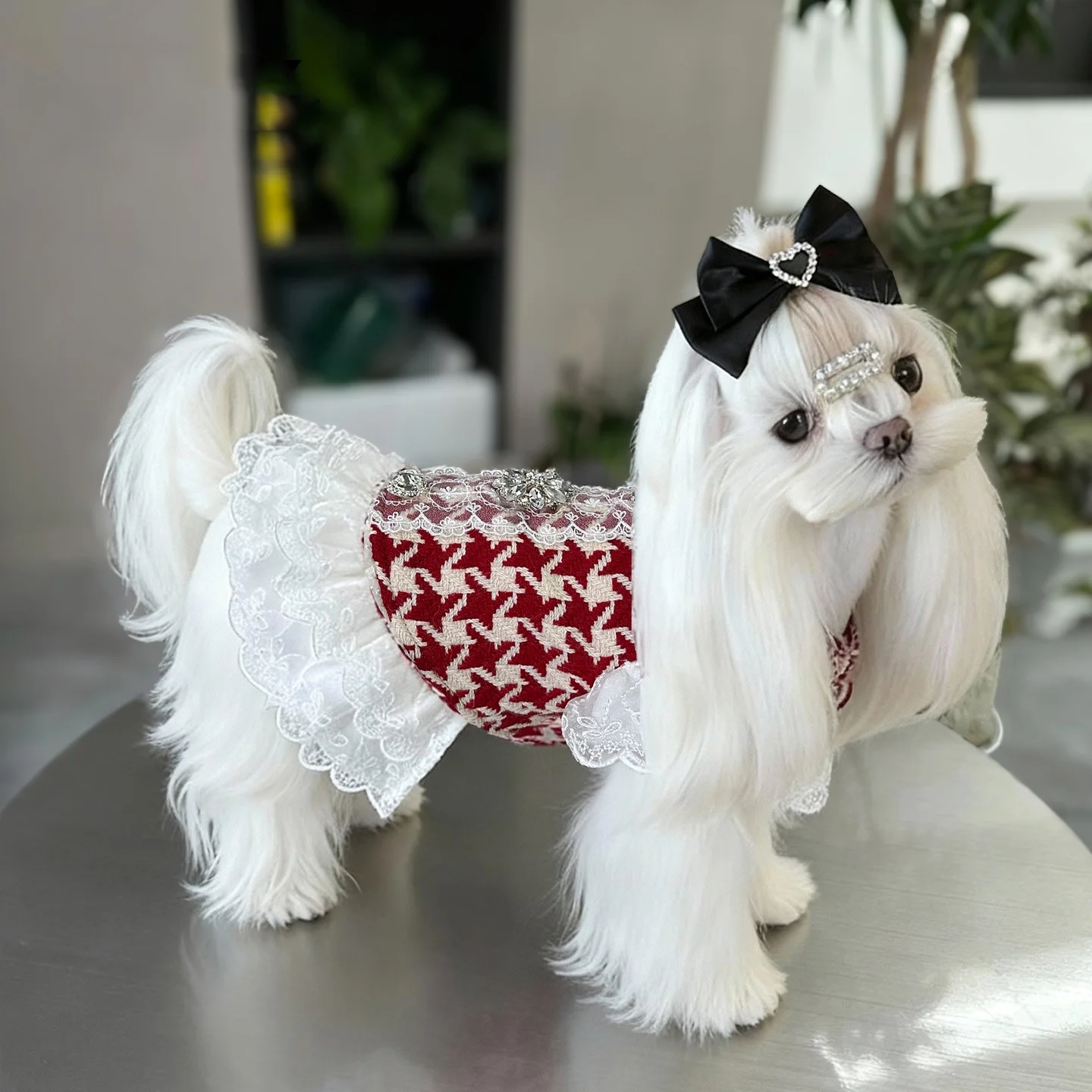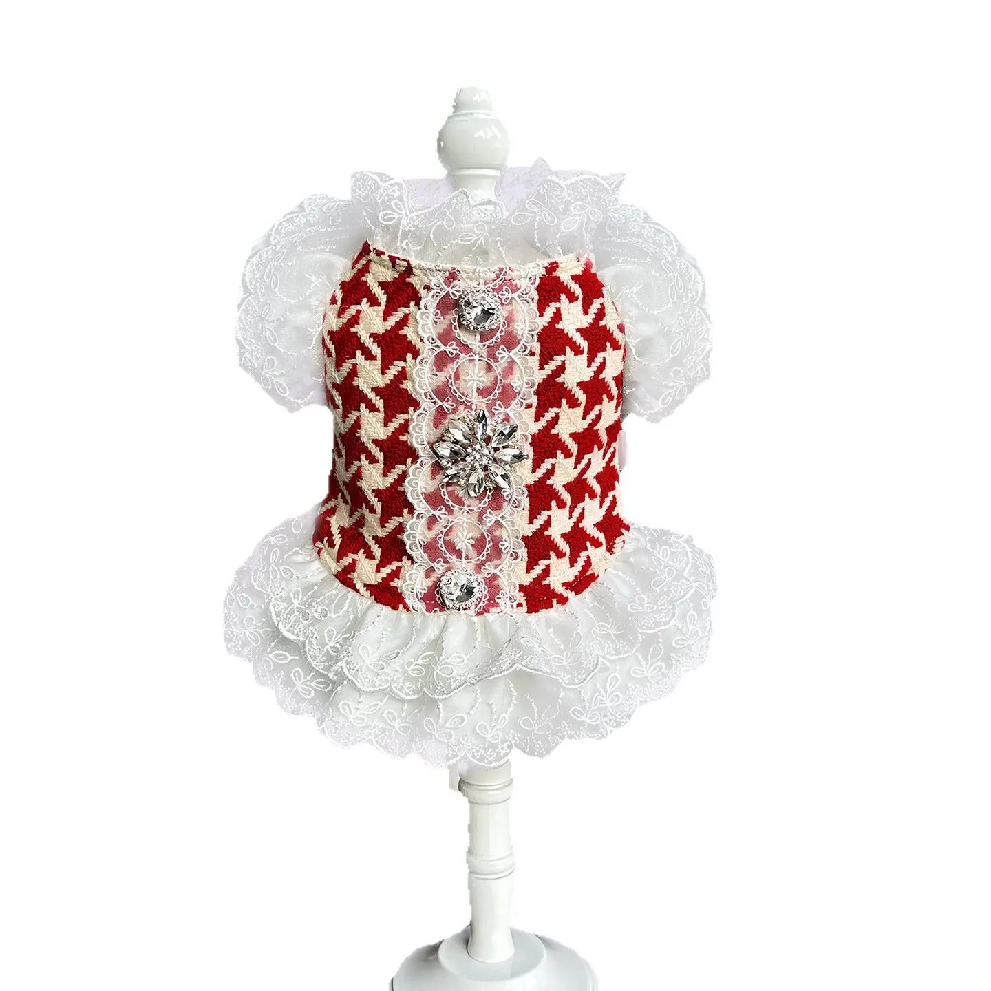 Vestidos a cuadros de Tweed para perros pequeños, vestido de princesa para perros, vestido de boda para mascotas, ropa Formal para fiesta de cumpleaños, vestido de tul para perros