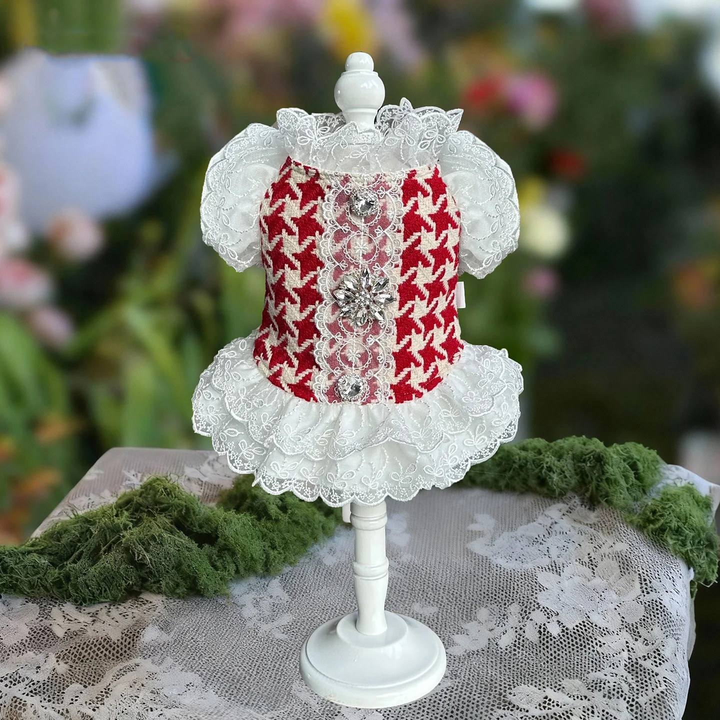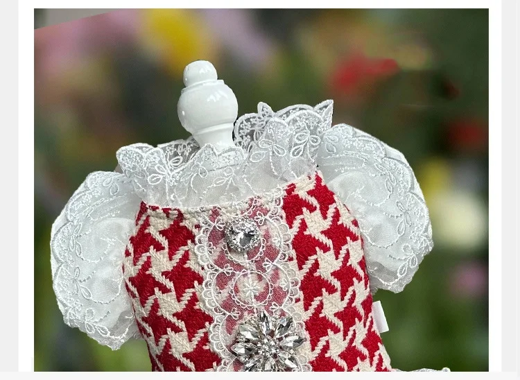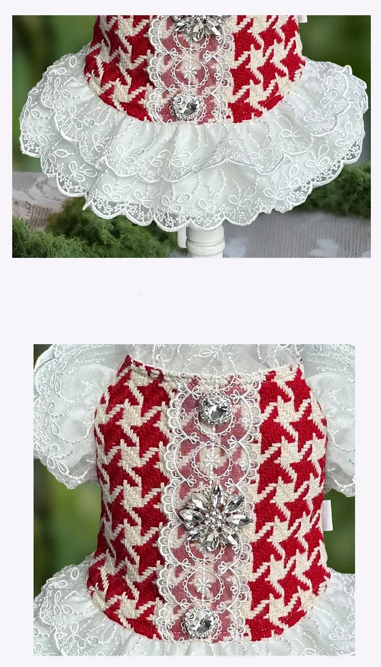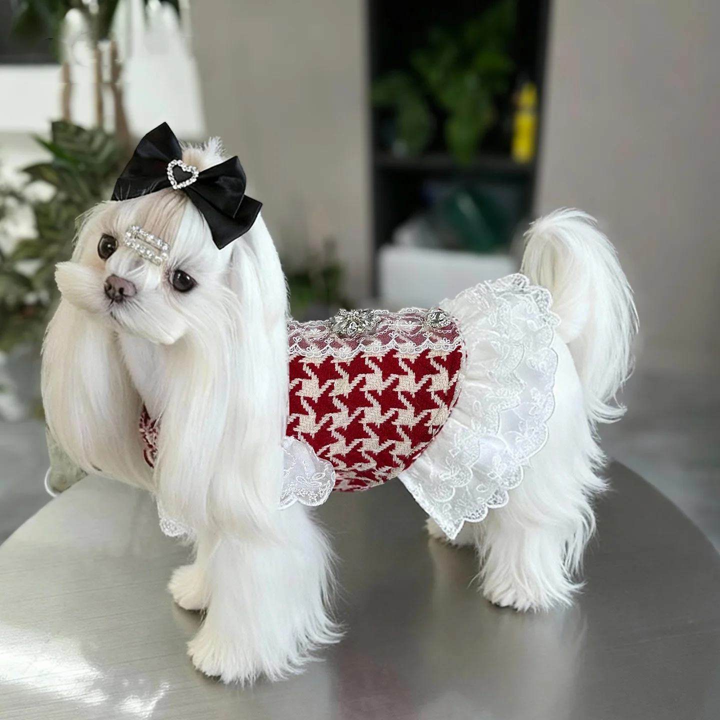 Vestidos a cuadros de Tweed para perros pequeños, vestido de princesa para perros, vestido de boda para mascotas, ropa Formal para fiesta de cumpleaños, vestido de tul para perros
