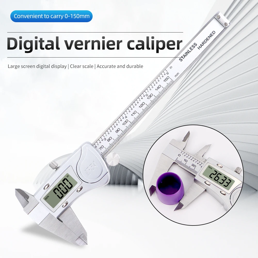 Calibrador Vernier de 0-150mm, herramientas de medición de pachómetro Digital, regla electrónica, calibrador Vernier de acero inoxidable con caja