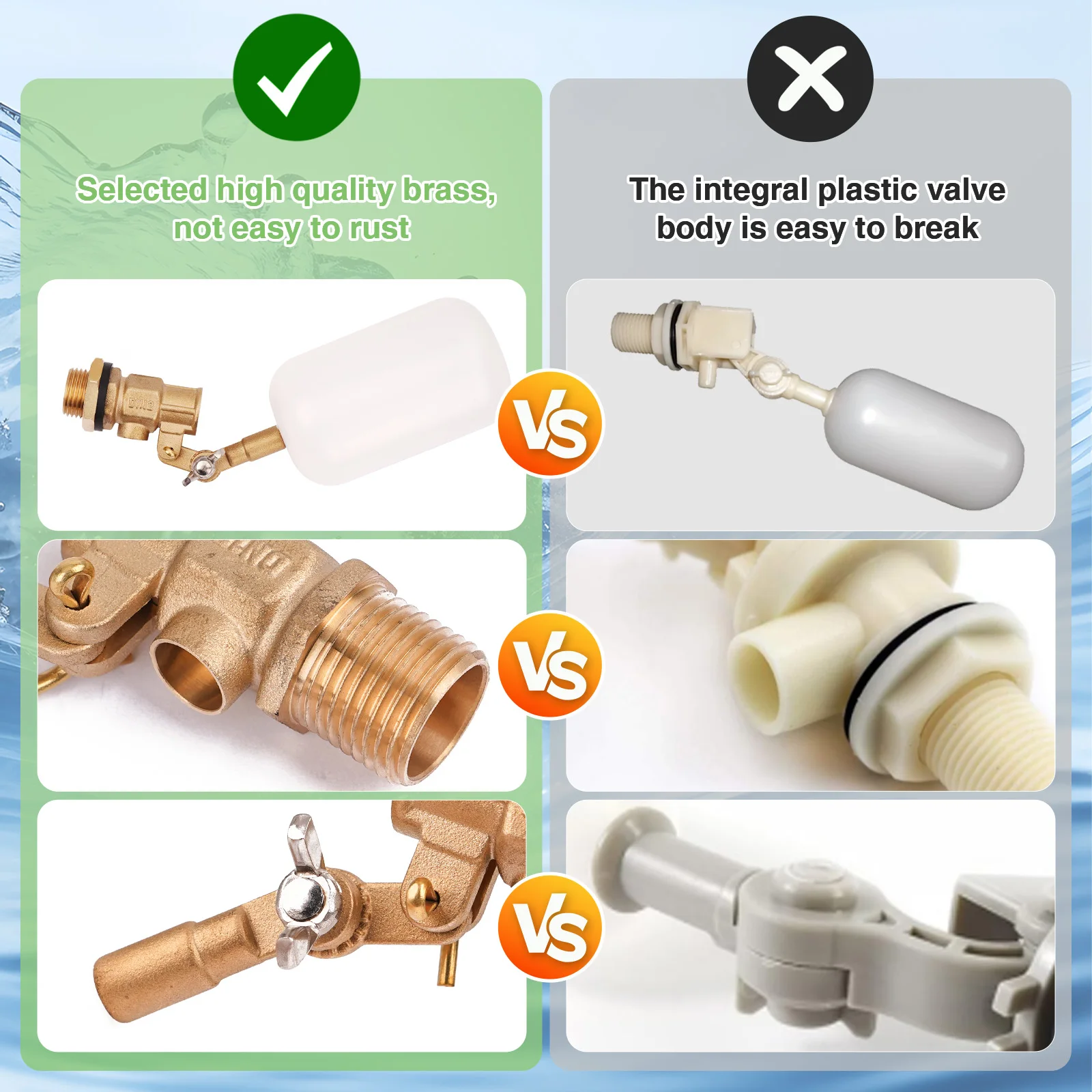 Amplia gama de aplicaciones: las válvulas de flotador de tanque son adecuadas para estanques, gallineros, estanques de ganado, acuarios, acuarelas, acuicultura y depósitos hidropónicos, y son más adaptables que las válvulas de flotador de metal tradicionales.