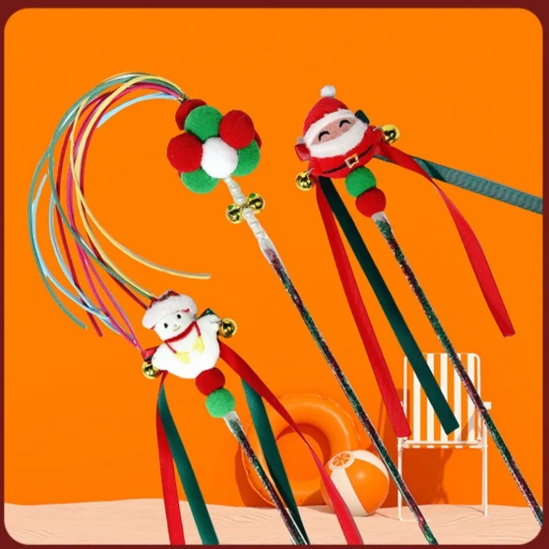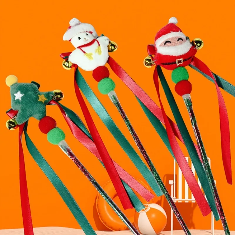 1/4 Uds. Juguete interactivo para gatos muñeco de nieve Santa Claus árbol de Navidad gatos jugando juguete rompecabezas varita con borlas juguete para perseguir para gato
