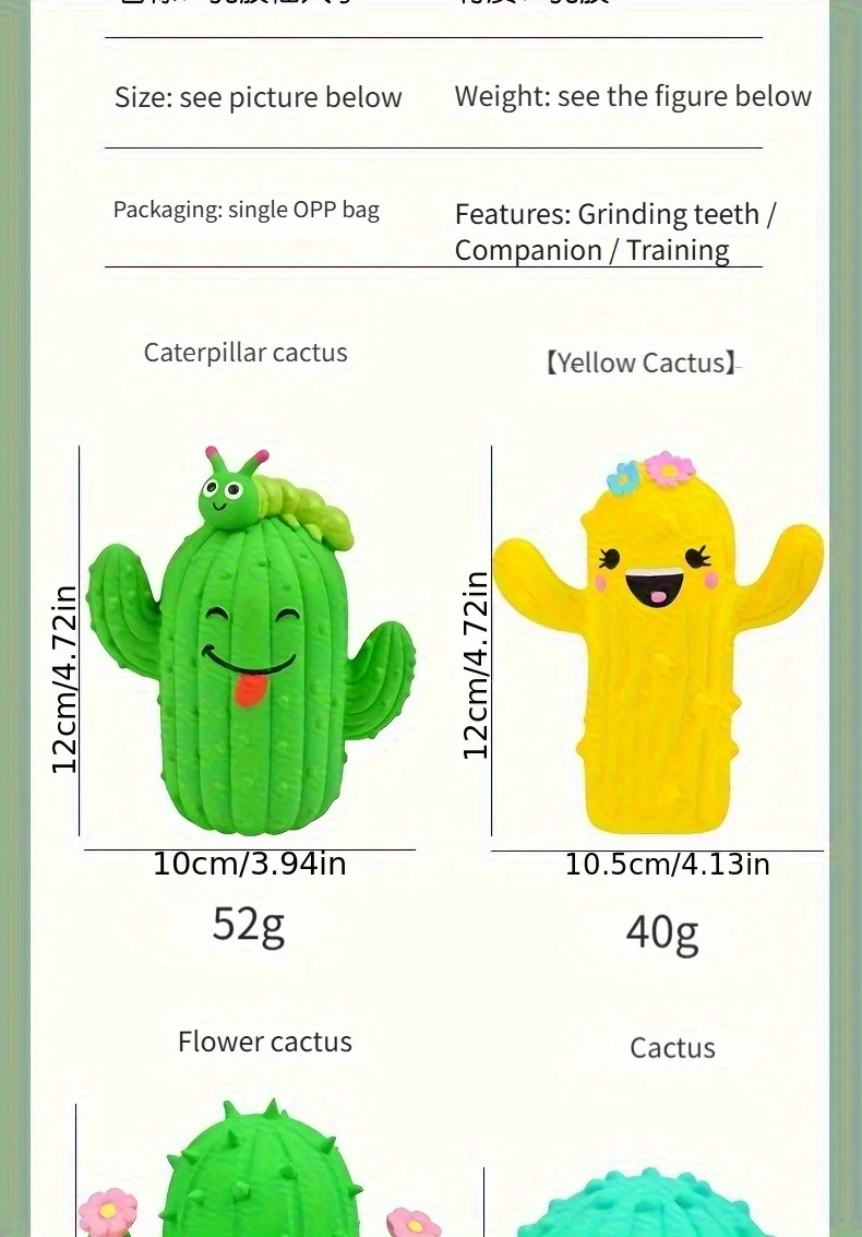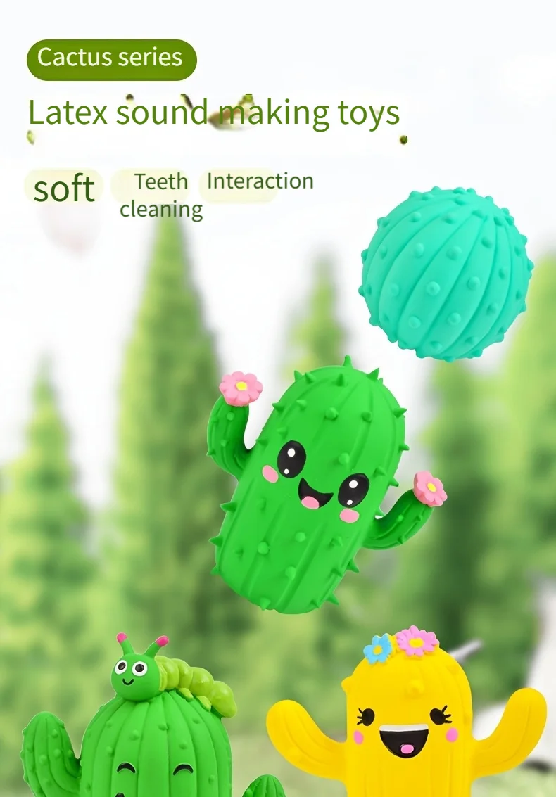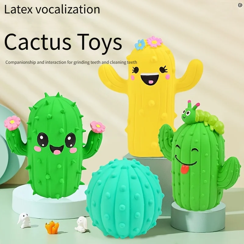 1/4 Uds juguetes chirriantes para perros pequeños y medianos goma de látex suave lindo Cactus perro bola sonido chirriante juguete para mascotas juguete interactivo para masticar