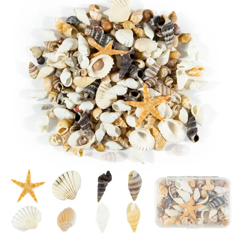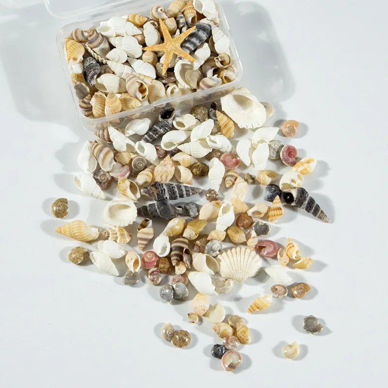 1 caja de adornos de estilo mixto aleatorio, concha Natural, paisaje de acuario, concha de mar pequeña, decoración de playa, suministros para pecera, manualidades DIY