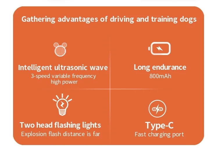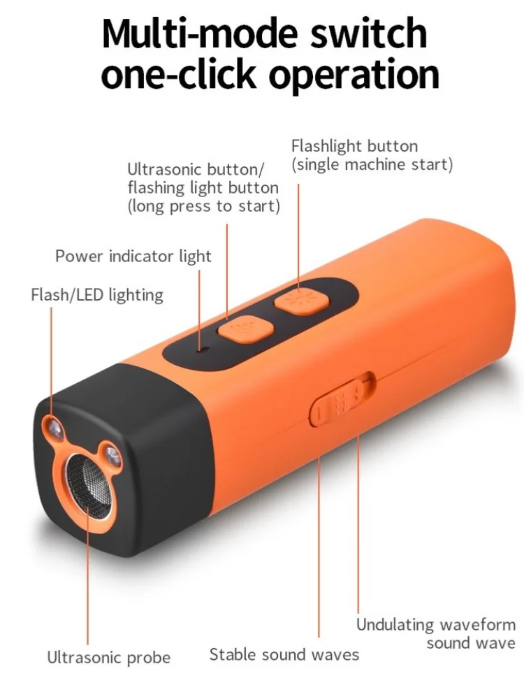 Especificaciones: Color: naranja Estilo: Moderno Tipo de controlador: Control de botones Material Plástico Voltaje/corriente de entrada: 5V/2A (CC) Onda sonora de trabajo: 25KHz-40KHz Dimensiones del producto: 4,3*1,2*1,2 pulgadas Peso del artículo 0,11 libras Usos recomendados del producto: adiestramiento de perros, parada de ladridos, persecución de perros vicios Componentes incluidos: repelente de perros sonicos, manual de usuario, cable micro USB